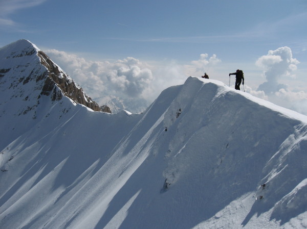 H2.1 (montée Cavale W-descente Eveque W) mais au passage nous avons descendu la face N de l'Evêque bien poudreuse qui nous tendait les bras la [veille->http://www.volopress.net/volo/sortie2348.html]. Remontée sur l'arête N de l'evêque puis les grésillements des piolets sur les sacs et les cumulus sur nos têtes nous ont incité à prendre la tangente vite fait (éclairs et tonnerre, 1/2 heure après...)