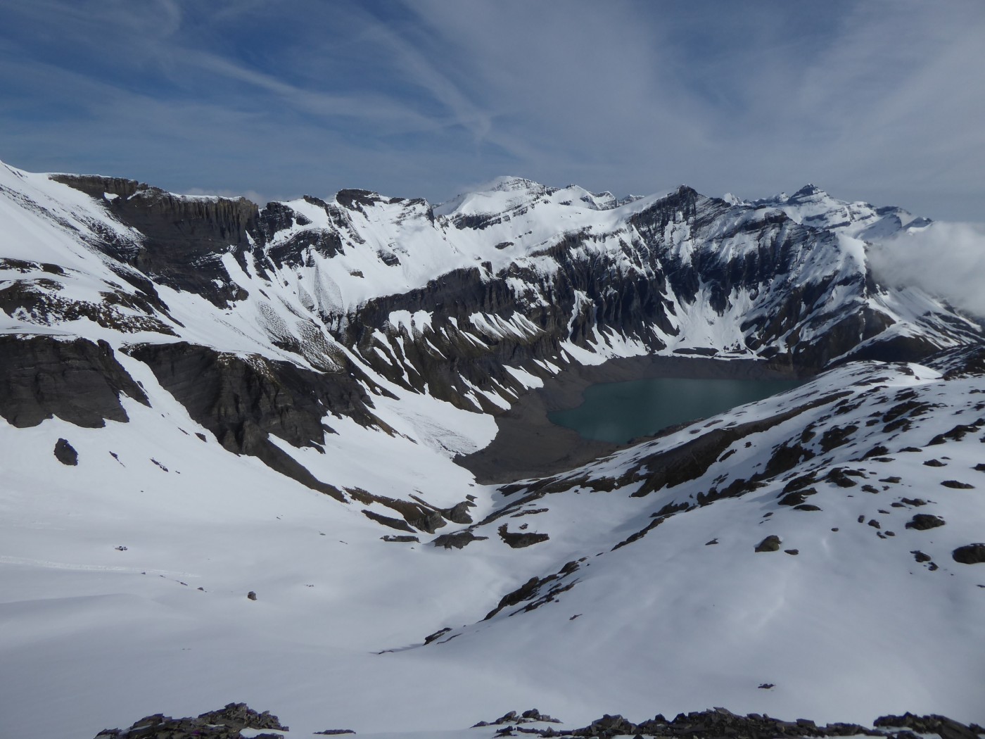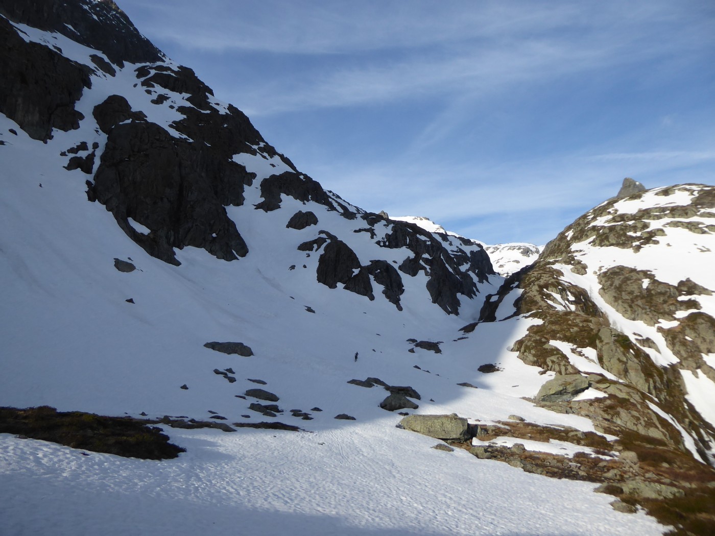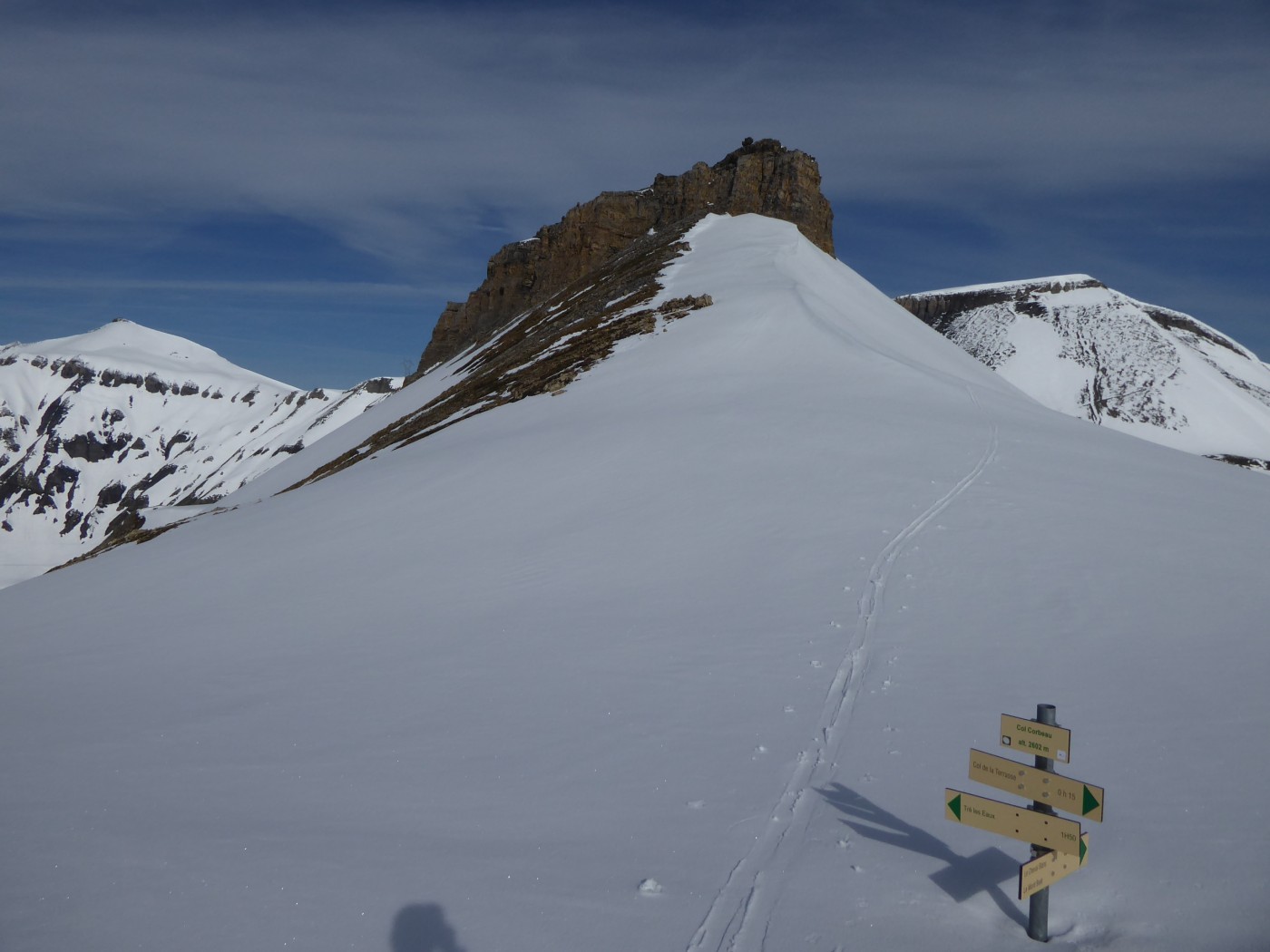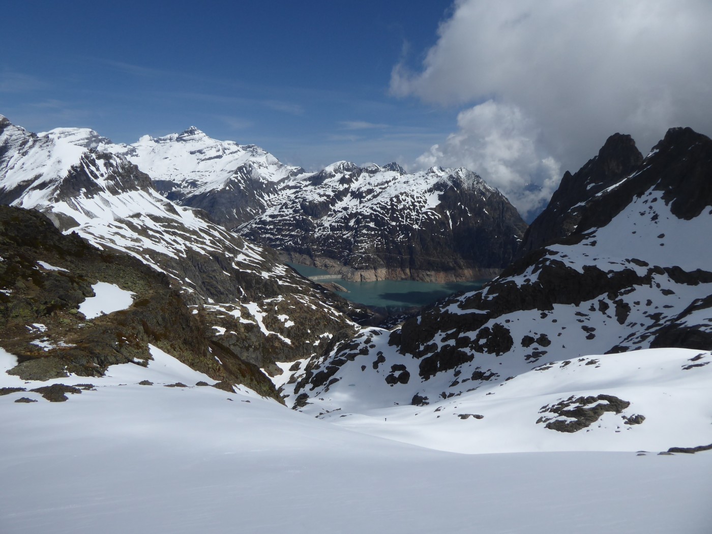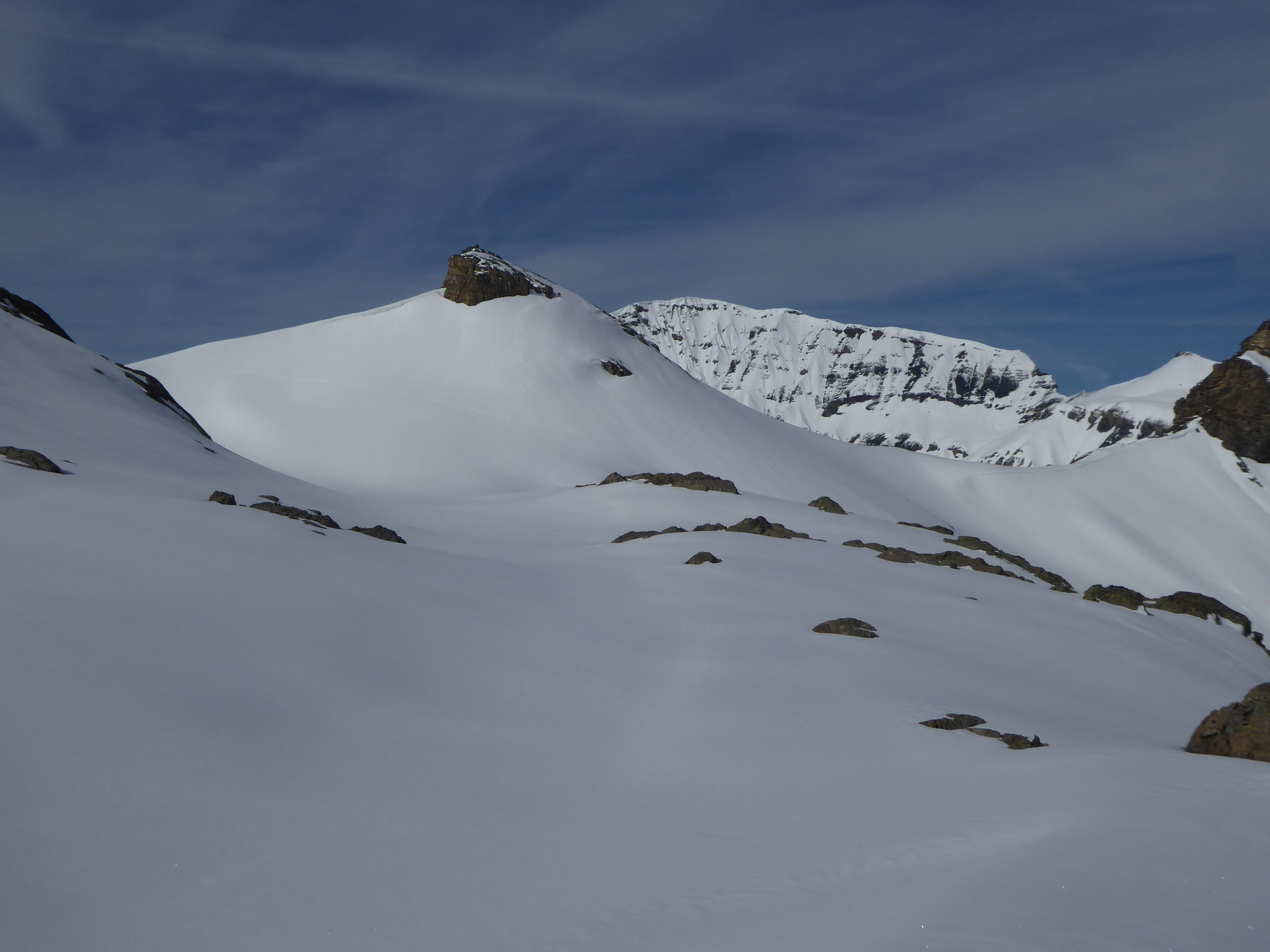 Jolie combinaison dont la partie Eves-Corbeaux permet d'évoluer en marge des grandes classiques du secteur (Cheval Blanc et Terrasse). On chausse sur la route 0,1 km après le barrage. La descente versant SO de la pointe à Corbeaux (E) était moins enneigée que quand je suis passé {{[l'année dernière->https://www.volopress.net/sortie6383.html]}}. Je suis descendu depuis le débouché du couloir NE qui était bien enneigé.