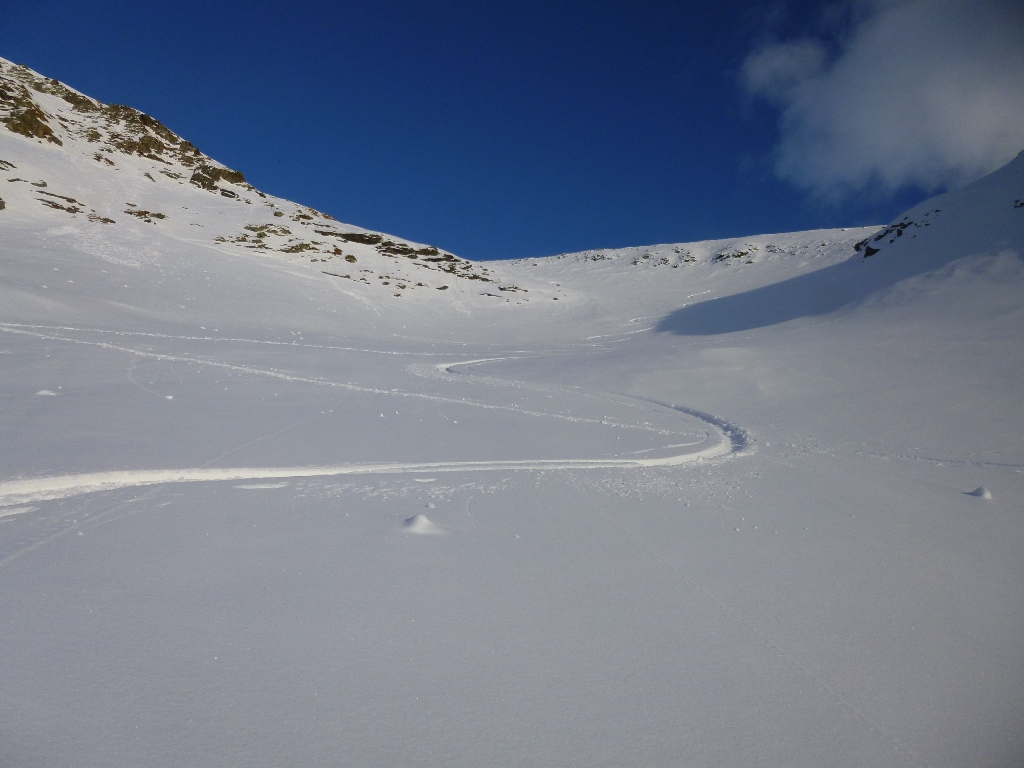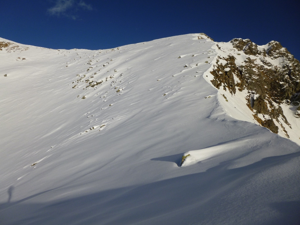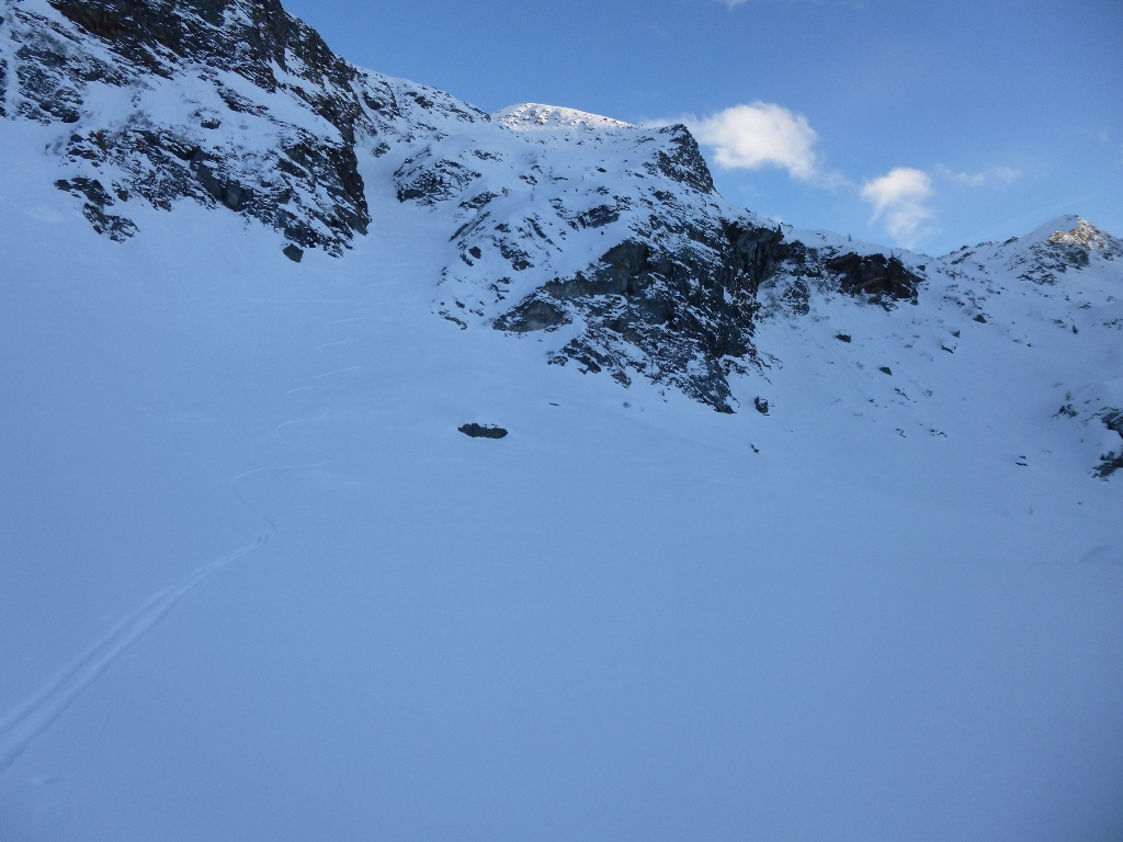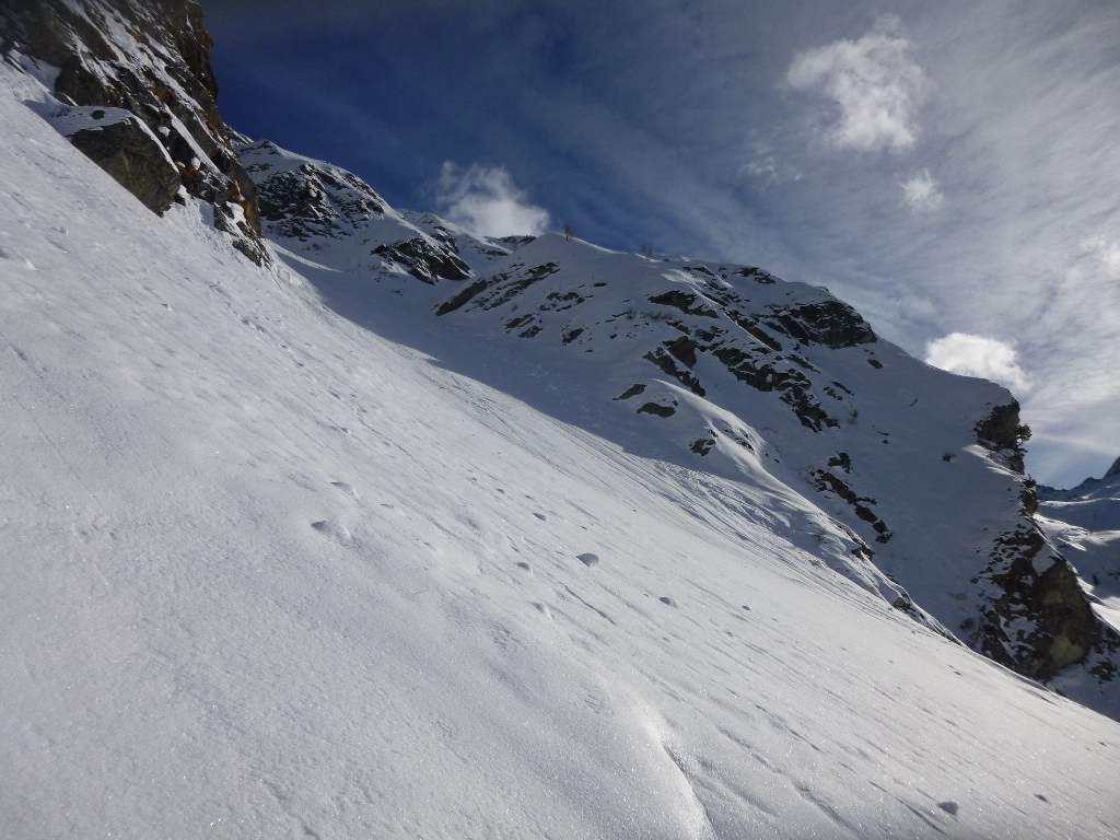 La nivo du vda annonçait un risque 1. Effectivement, bonne impression de stabilité du manteau. Quelques petites plaques près des arêtes. L'une d'entre elles a glissé entre mes pieds sur l'arête NO de la Facciabella. Dans les pentes raides NE et NO empruntées, les 20cm de poudreuse de la dernière chute ont tendance à glisser en petites coulées de surface sans gêner le ski. Globalement de très bonnes conditions de ski.