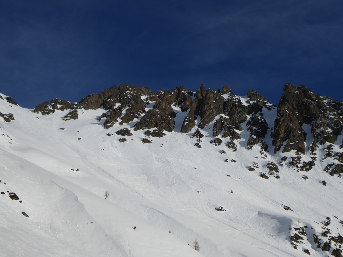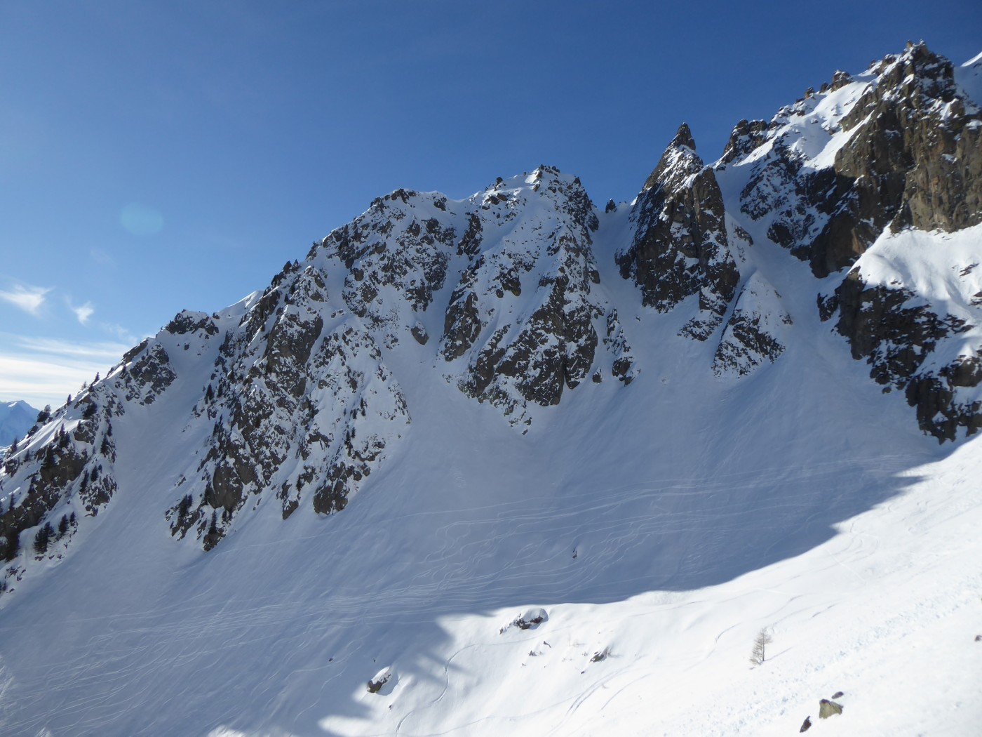 Encore de bonnes conditions dans les pentes ombragées. Au sud la neige est croutée ou de type printemps.