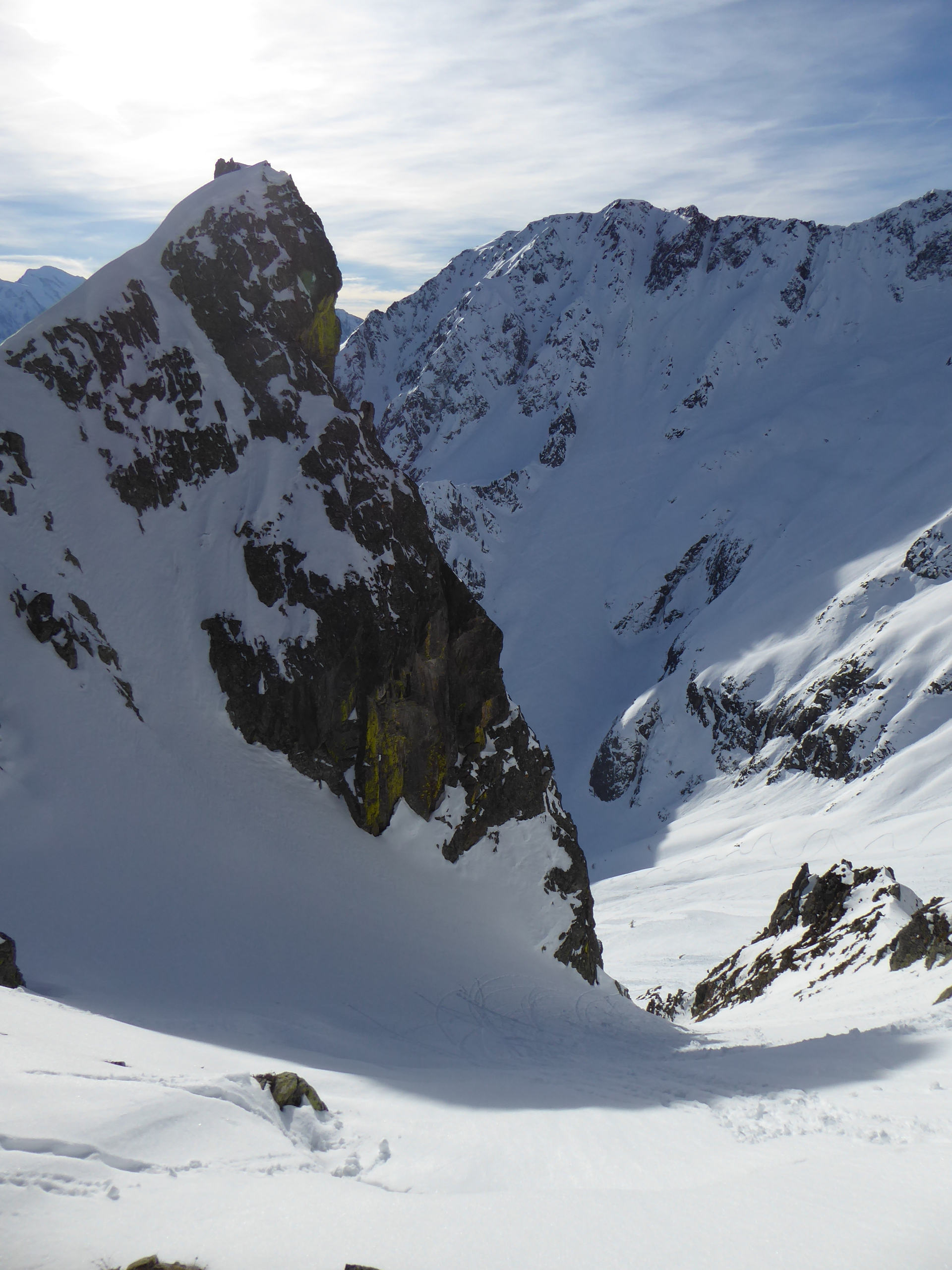 Les couloirs NE de la Rionde ne sont pas très longs (200m) et pas très raides (30-35° avec quelques passages à 40°) mais sont esthétiques et moins fréquentés que ceux de Bel Oiseau qui sont déjà très tracés. Aujourd'hui, les trois couloirs parcourus étaient vierges. Bonne année et bon ski à toutes et à tous.