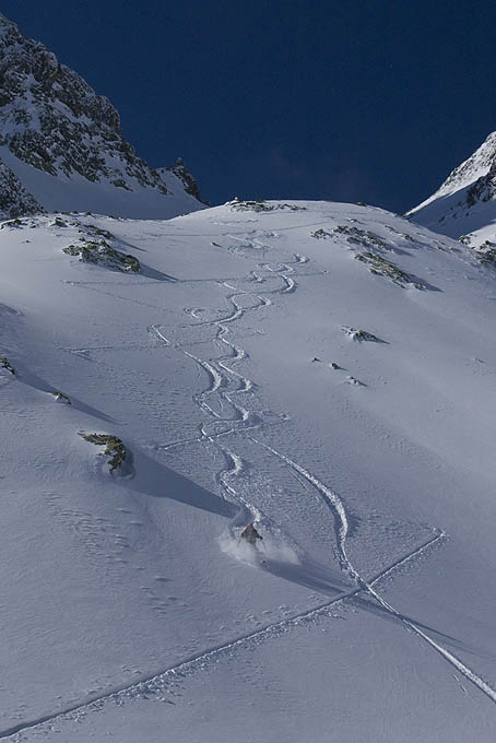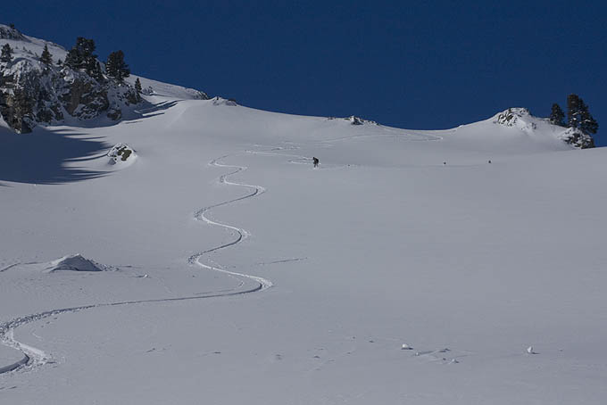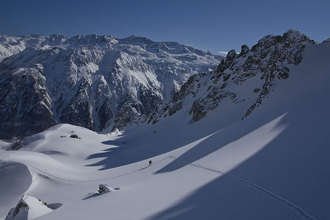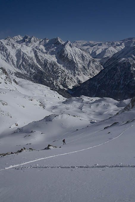 Paysages somptueux, enneigement monstrueux dans le secteur, une bonne grosse trace à faire à la montée et une descente où ça tourne juste avec les oreilles. Merci Belledonne.