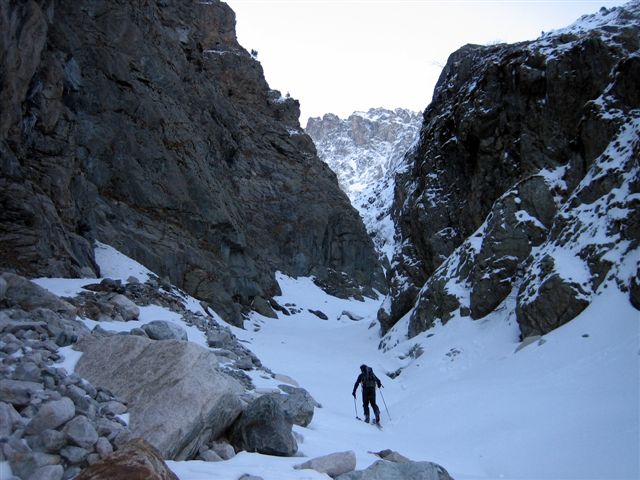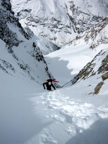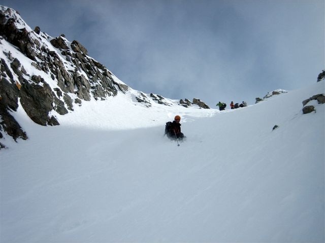 Un doute tout d'abord arrivés à la Berarde : Pas de neige fraiche alors que Belledonne et Taillefer sont platrés ! Puis finalement un itinéraire magnifique, un ravin super skiant, une super neige, bref une journée idéale. Partis à 4 on se retrouve finalement à 8 pour le même itinéraire. Avec la bonne entente qui a régné et toute cette neige il y en a eu finalement pour tout le monde.