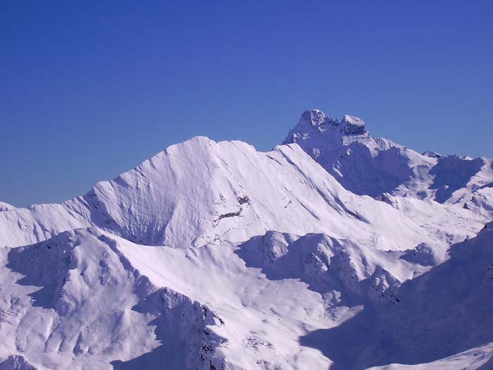 Montée à Fond-de-Peynin, descente de son versant nord-ouest jusqu'à la bergerie (point 2305), car la neige commençait à devenir moins agréable (liaison de la poudreuse en surface), remontée au col du Fond, traversée jusqu'à la pointe non nommée (cote 2927) et descente des pentes sud-ouest. Dénivelée qui dépasse tout juste les 1500 m, dont un peu plus de 1000 m de poudreuse sublime (600 pour la première descente, 450 pour la seconde).
