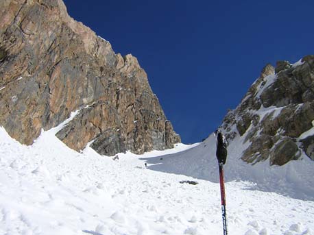 Trop pourri dans le couloir... Ca sent la fin de saison en Ubaye, départs secs, regel précaire, boules... seul versant nord type Chambeyron semblent bon, (info par Guide rencontré, bonnes conditions dans couloir Jean Coste (D9) il y a 3 jours).