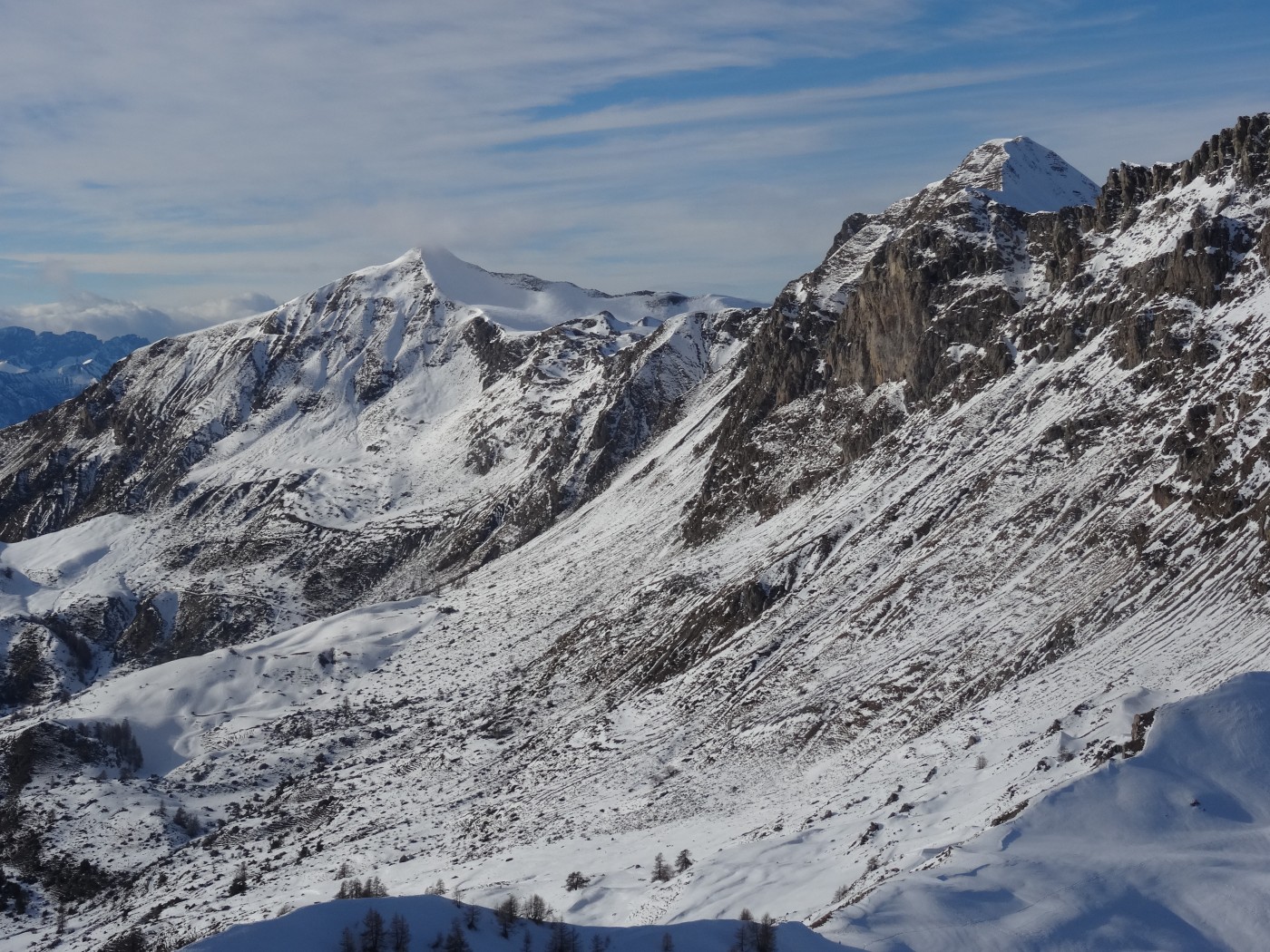 L'état des lieux n'est pas fameux : la chute récente (20 à 30 cm le lundi 14/2) sera vite oubliée là il n'y avait pas de sous-couche, c'est-à-dire dans tous les versants sud, jusqu'en haut. En versants abrités le redoux n'a pas encore eu le temps de tout détruire, ça reste poudreux.