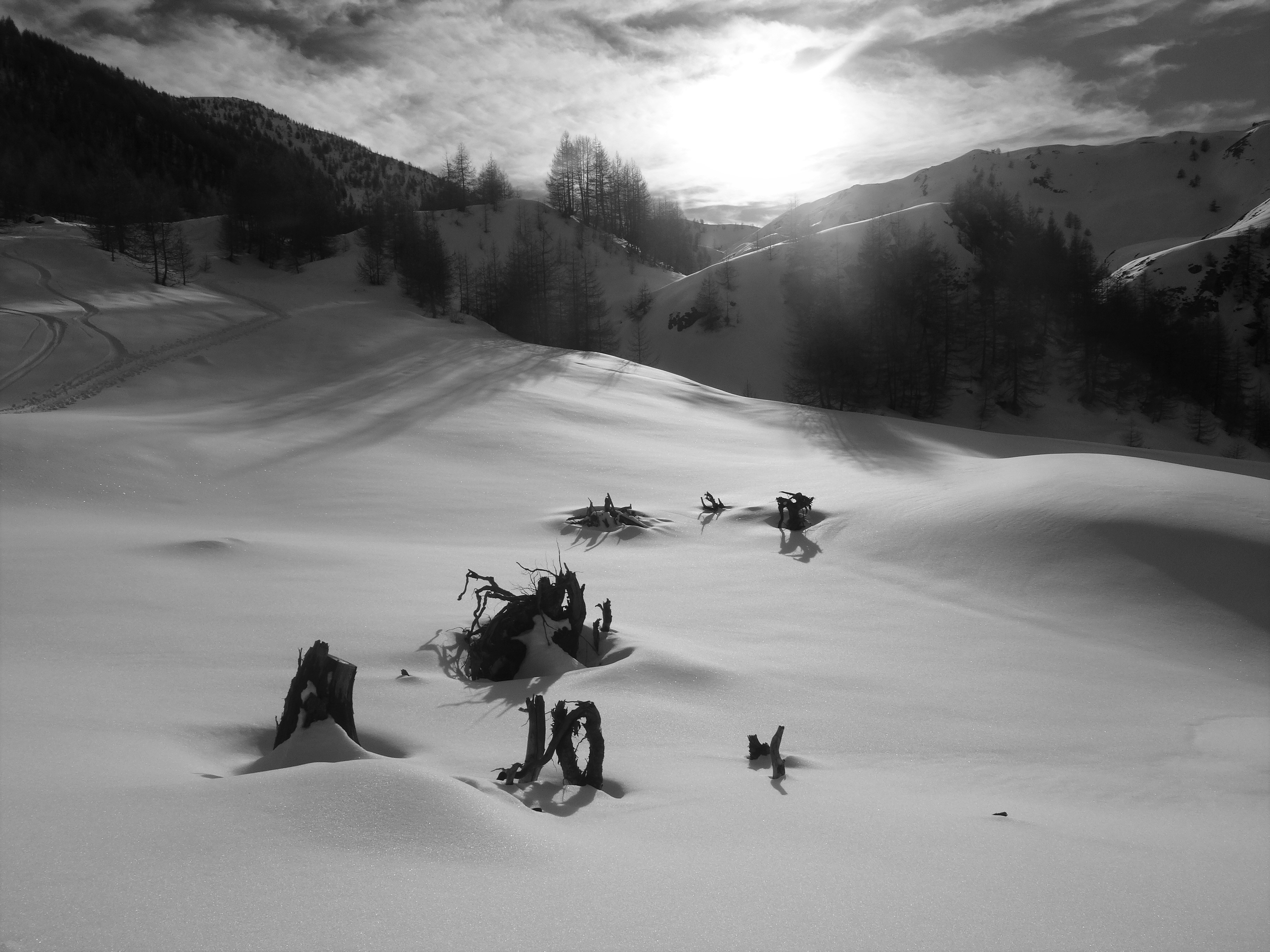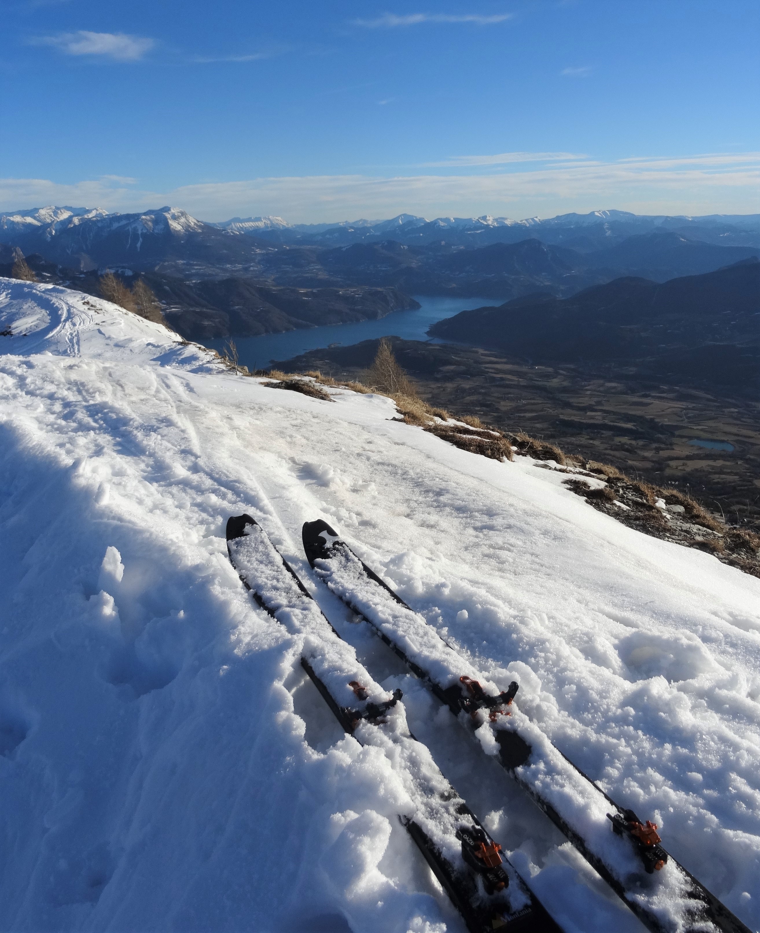 Etonnamment, 3 jours après la chute et pendant les vacances scolaires, le secteur n'est pas excessivement tracé versant Réallon (le versant sud ne se discute même pas tant l'enneigement est maigre, légèrement tracé par des raquettistes : pas terrible pour monter, avec option bottage)