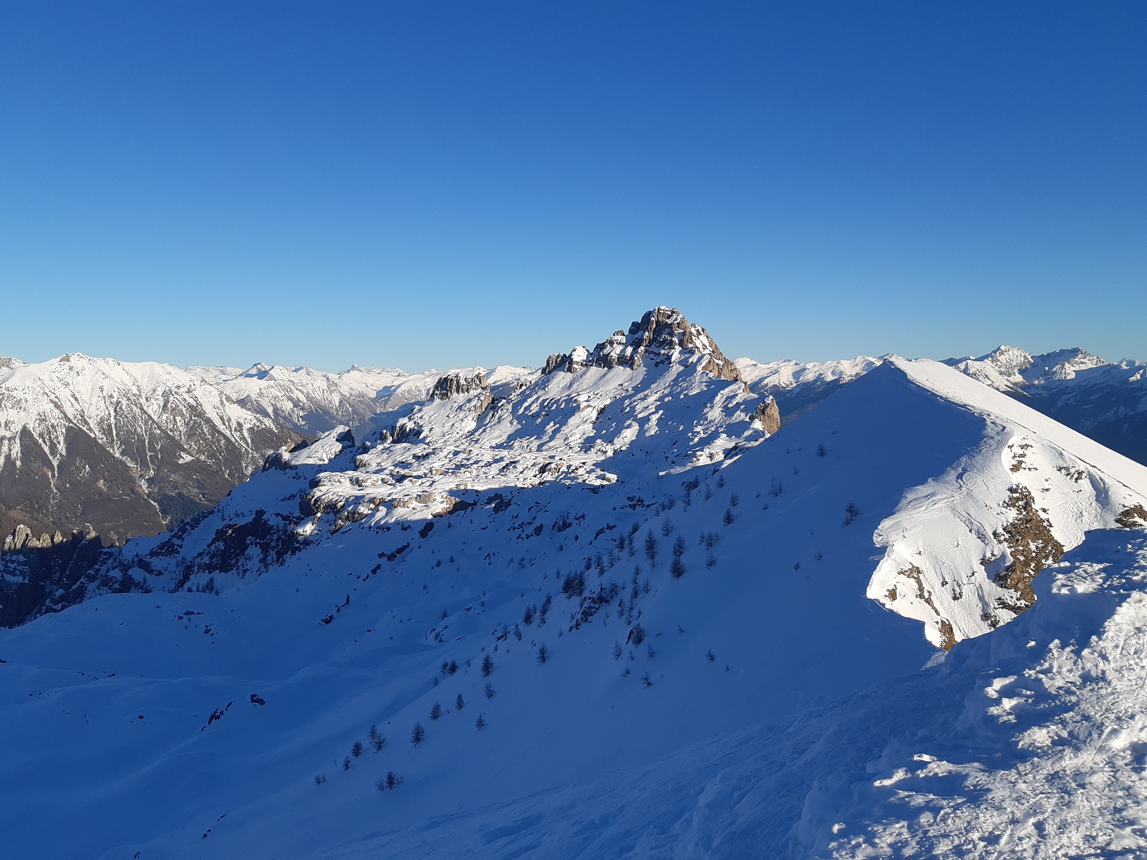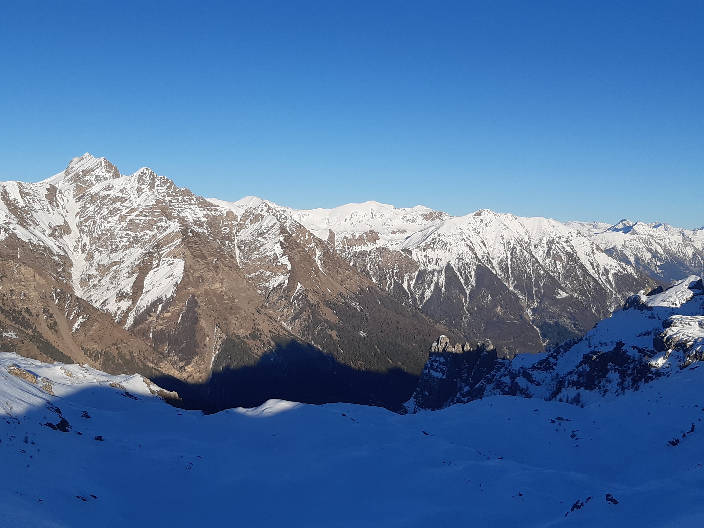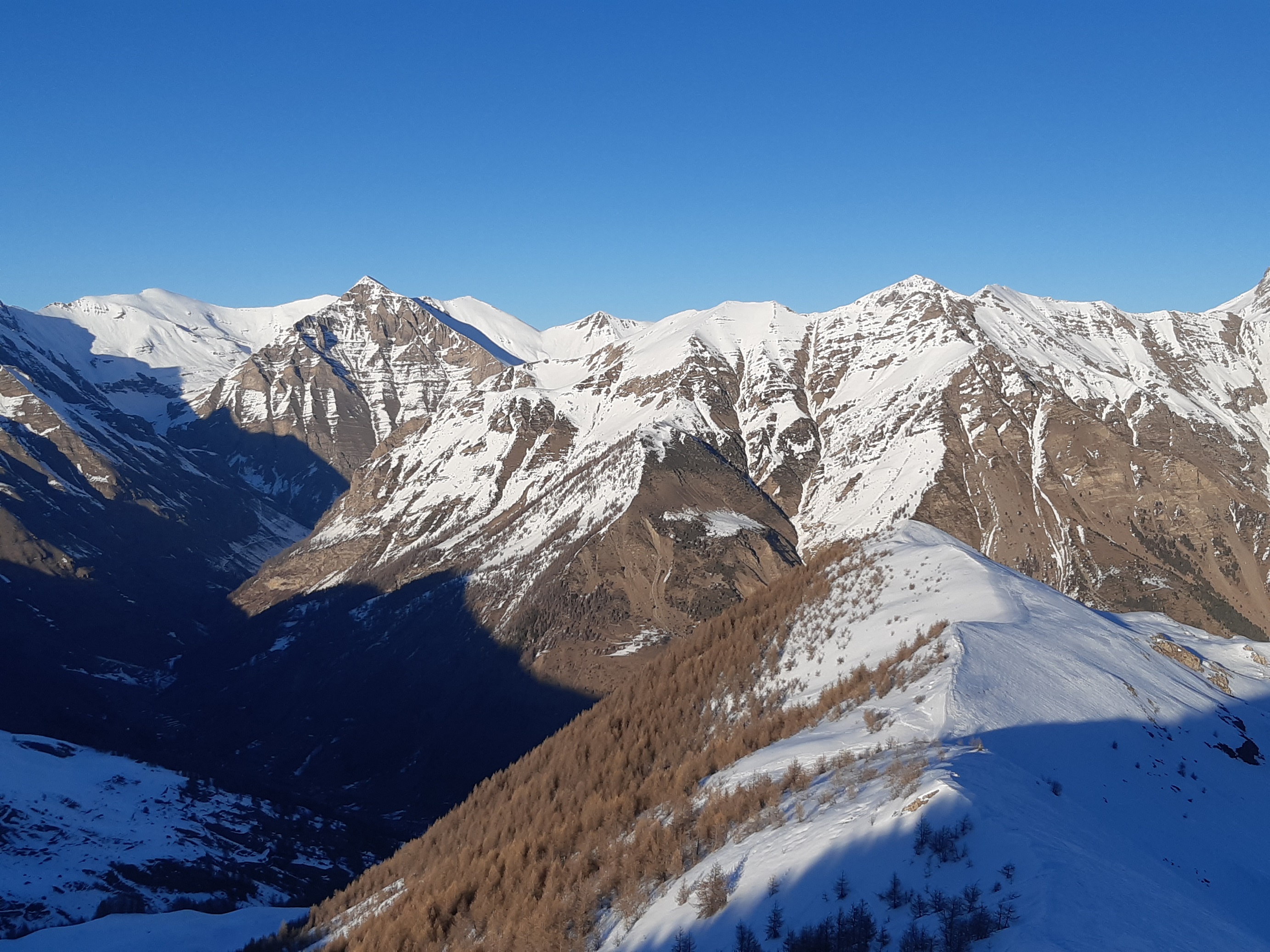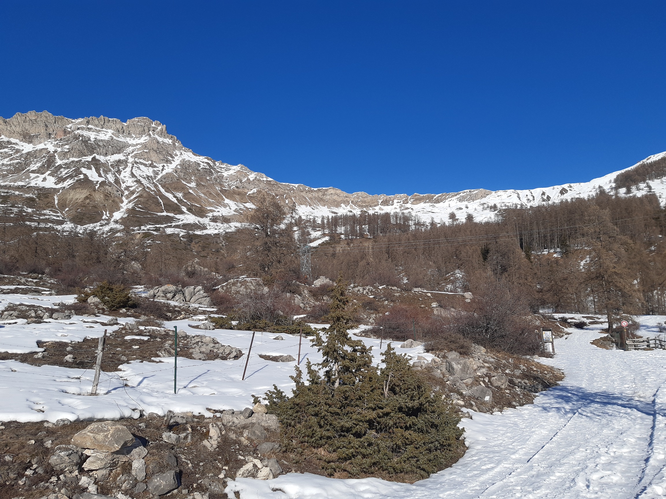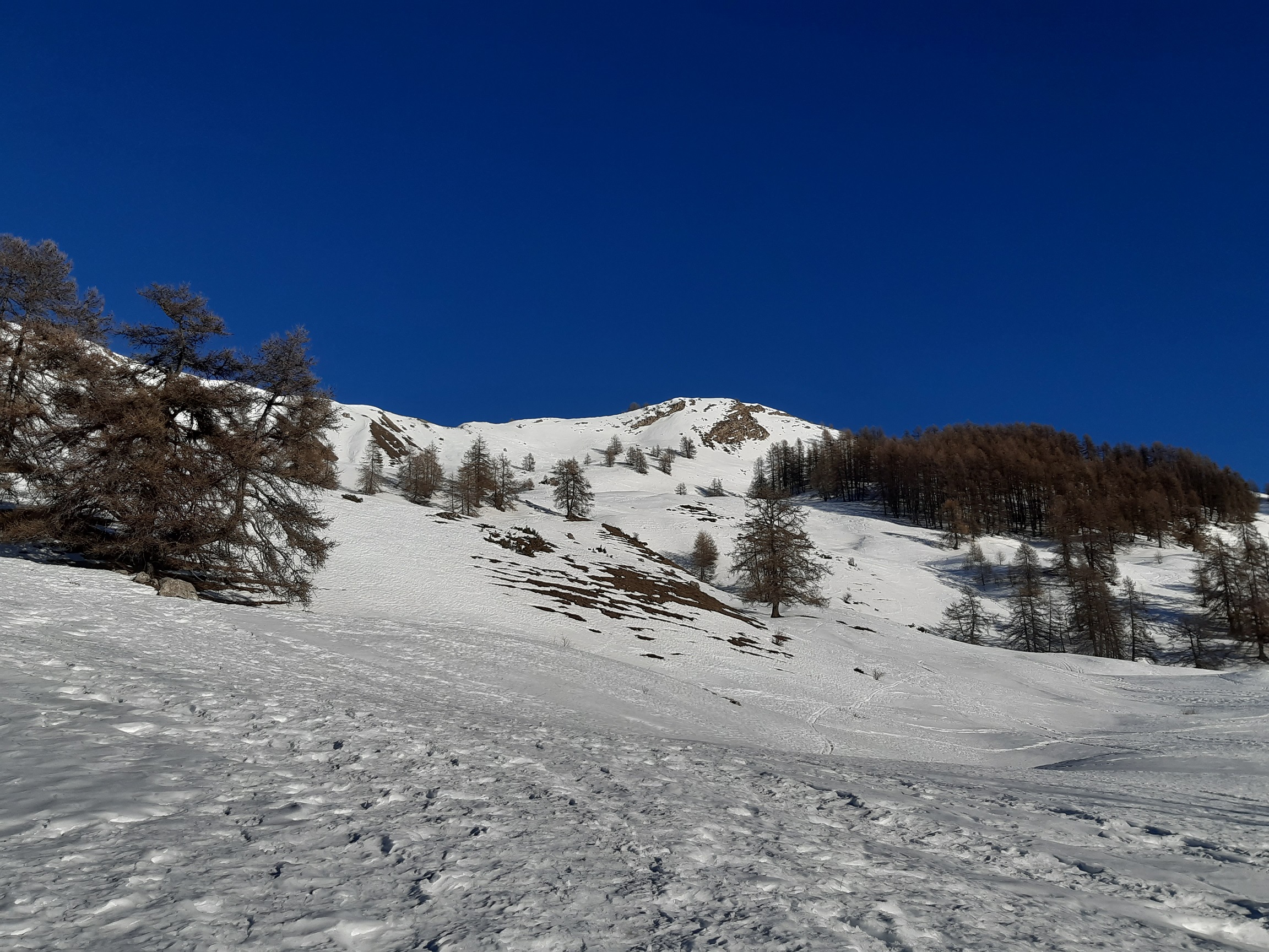 On peut se garer à 1610 sur la piste carrossable, sans déchaussage ce jour mais ce ne sera plus le cas très bientôt avec le redoux. Montée à la Fourche (2303) via le col de la Gardette.