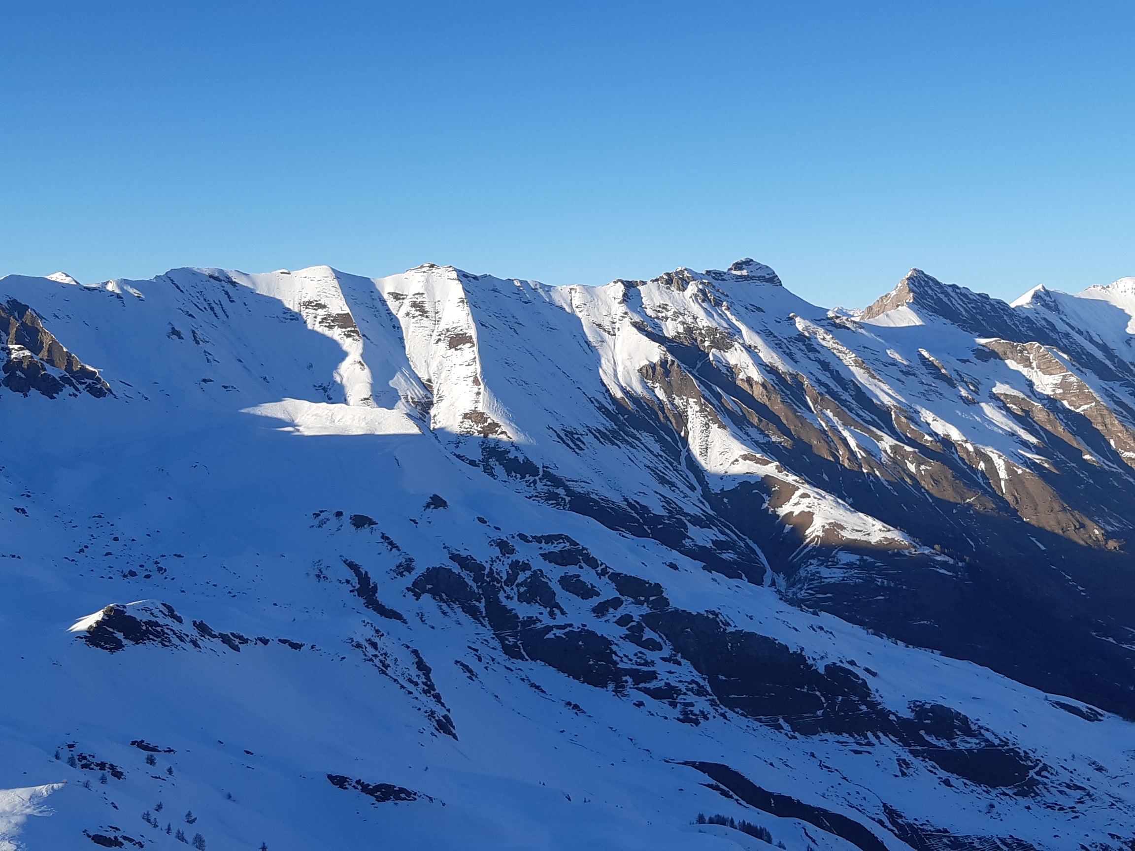 Etat des lieux du secteur : grandes similitudes avec l'"hiver" 2022, avec une sécheresse un peu moins sévère. Pas mal d'itinéraires passent encore, tant que ce n'est pas raide plein sud. Comme attendu la qualité de la neige est assez médiocre, globalement lourde. Il reste quelques zones de neige froide bien abritées.