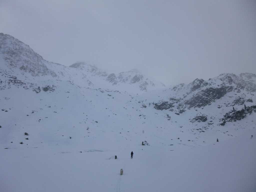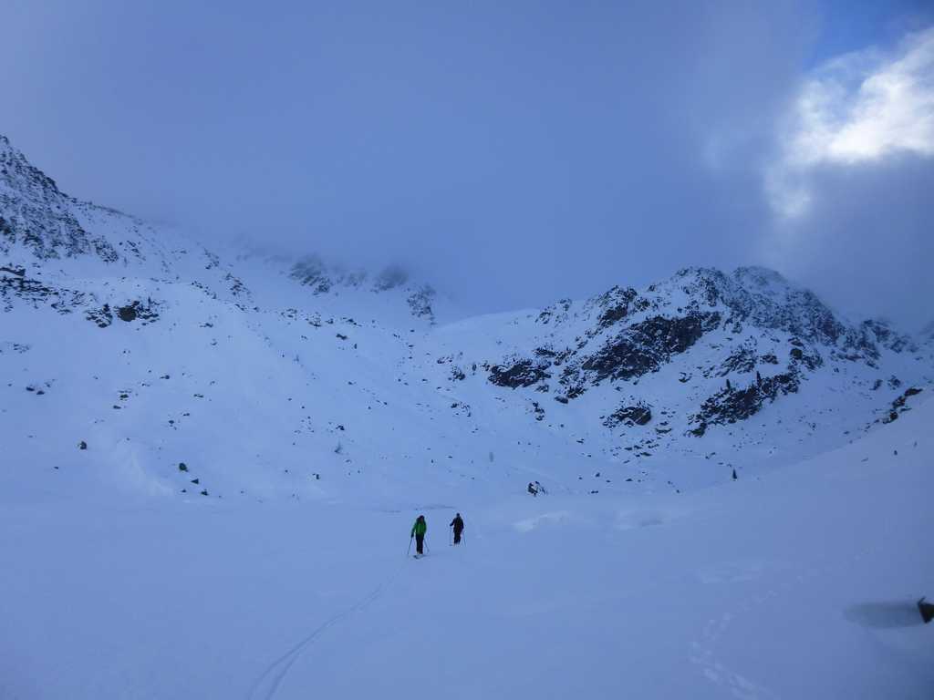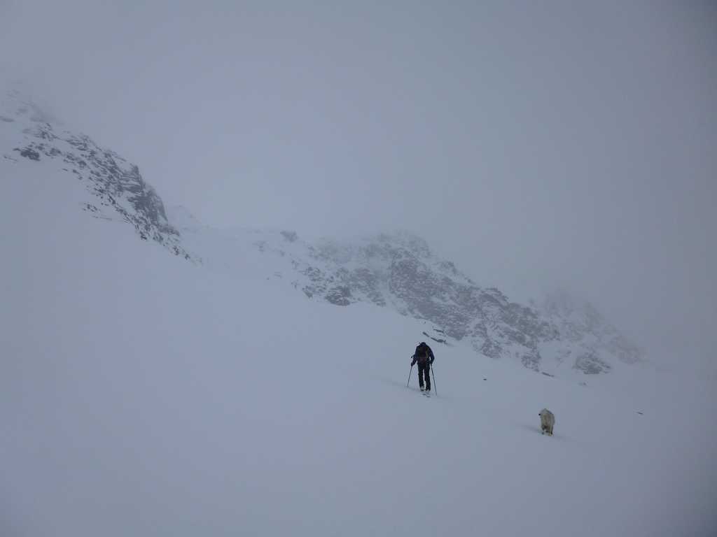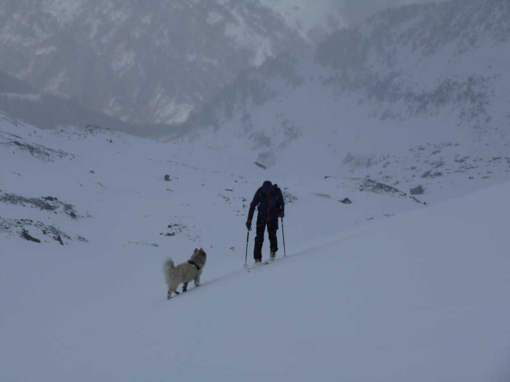 L'idée était d'aller au Freduaz central en boucle par les cols du grand Glacier et de Truc (Truche sur les cartes françaises) soit une variation italienne de A1.4 du toponeige Vanoise. La perturbation de SO déjà bien active nous a conduit à opter pour une montée directe par le glacier occidental de Freduaz.