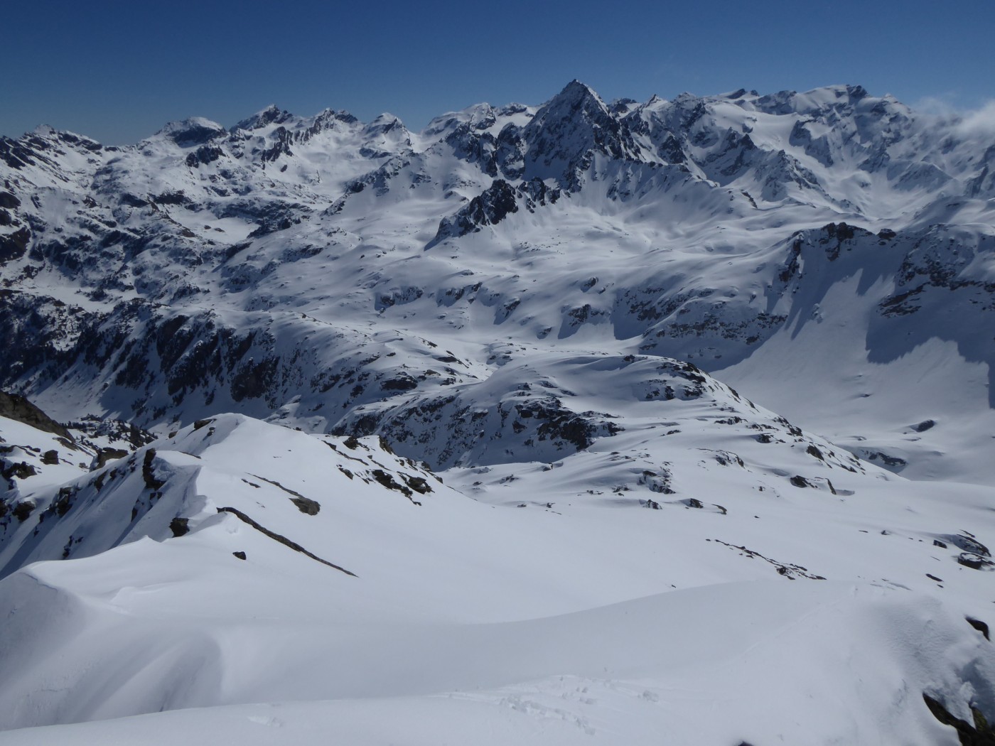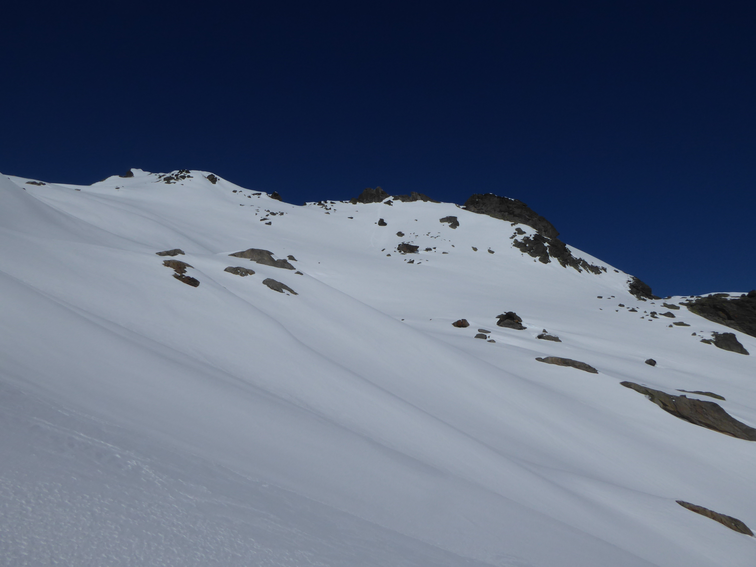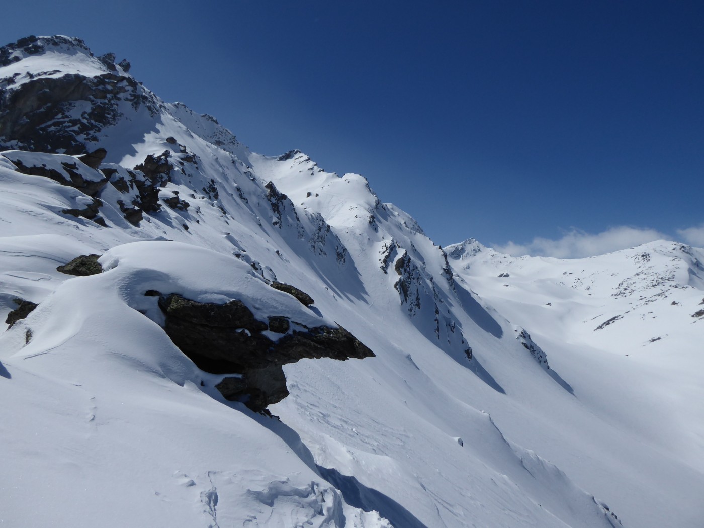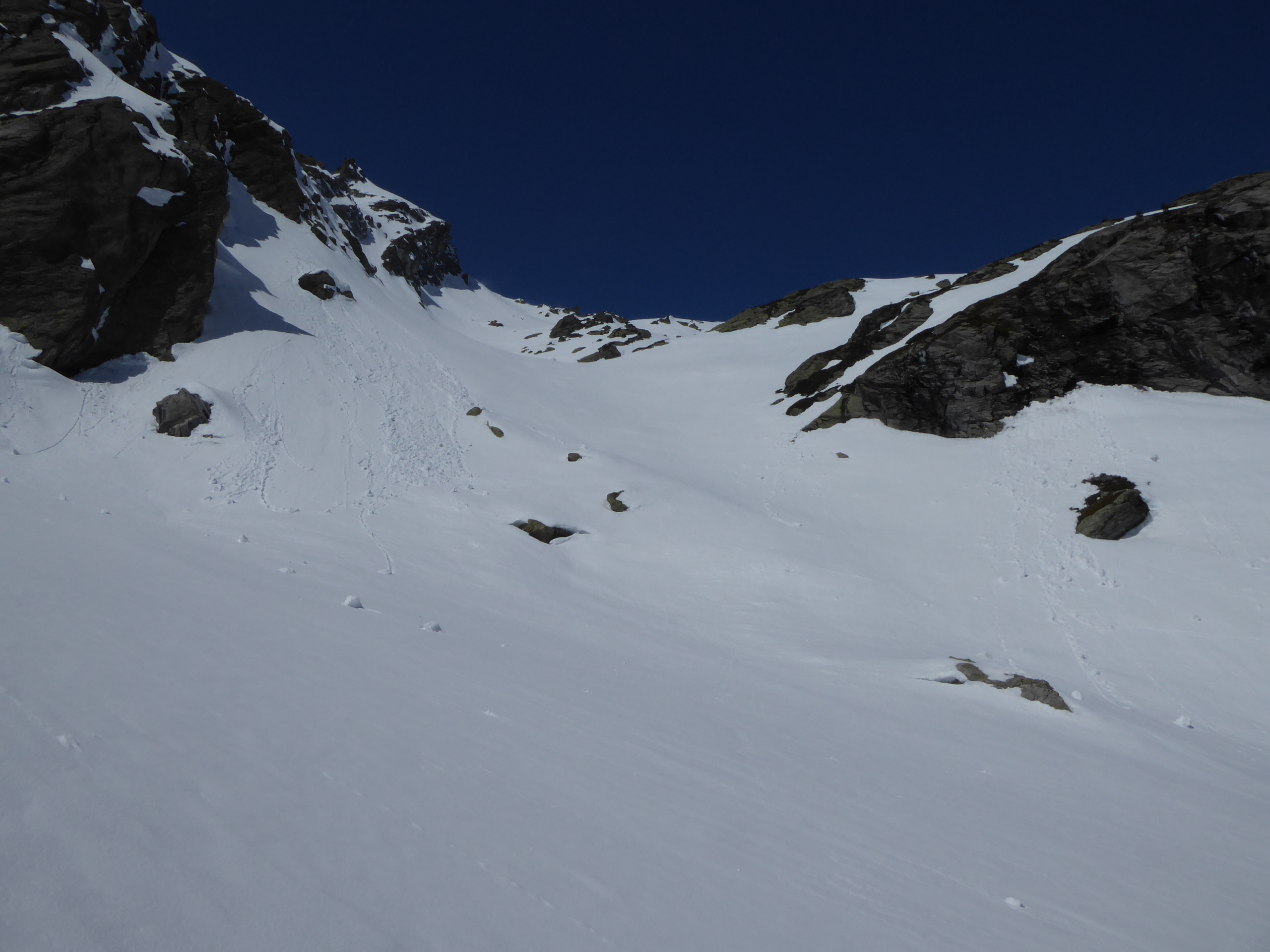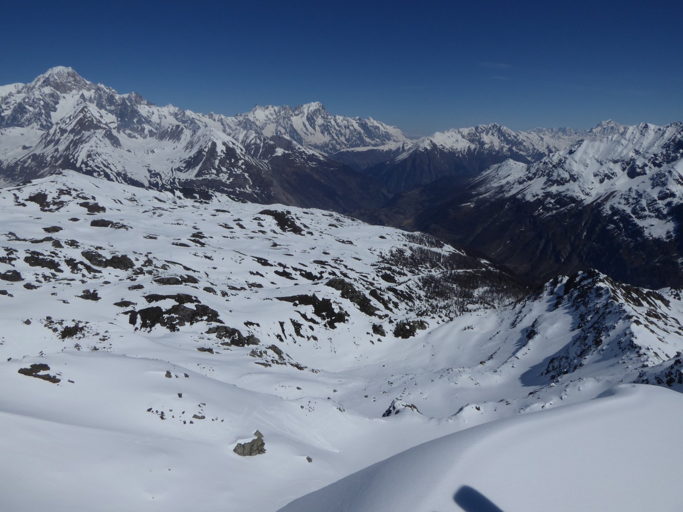 Je n'ai chaussé les skis qu'à l'entrée de la combe Sozin (1840m). J'ai opté pour un retour par le vallon des Ponteilles pour profiter des pistes de La Thuile et skier jusque dans la vallée. La station est ouverte jusqu'au 22 avril.