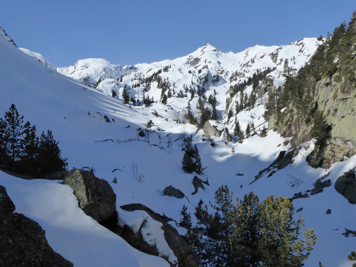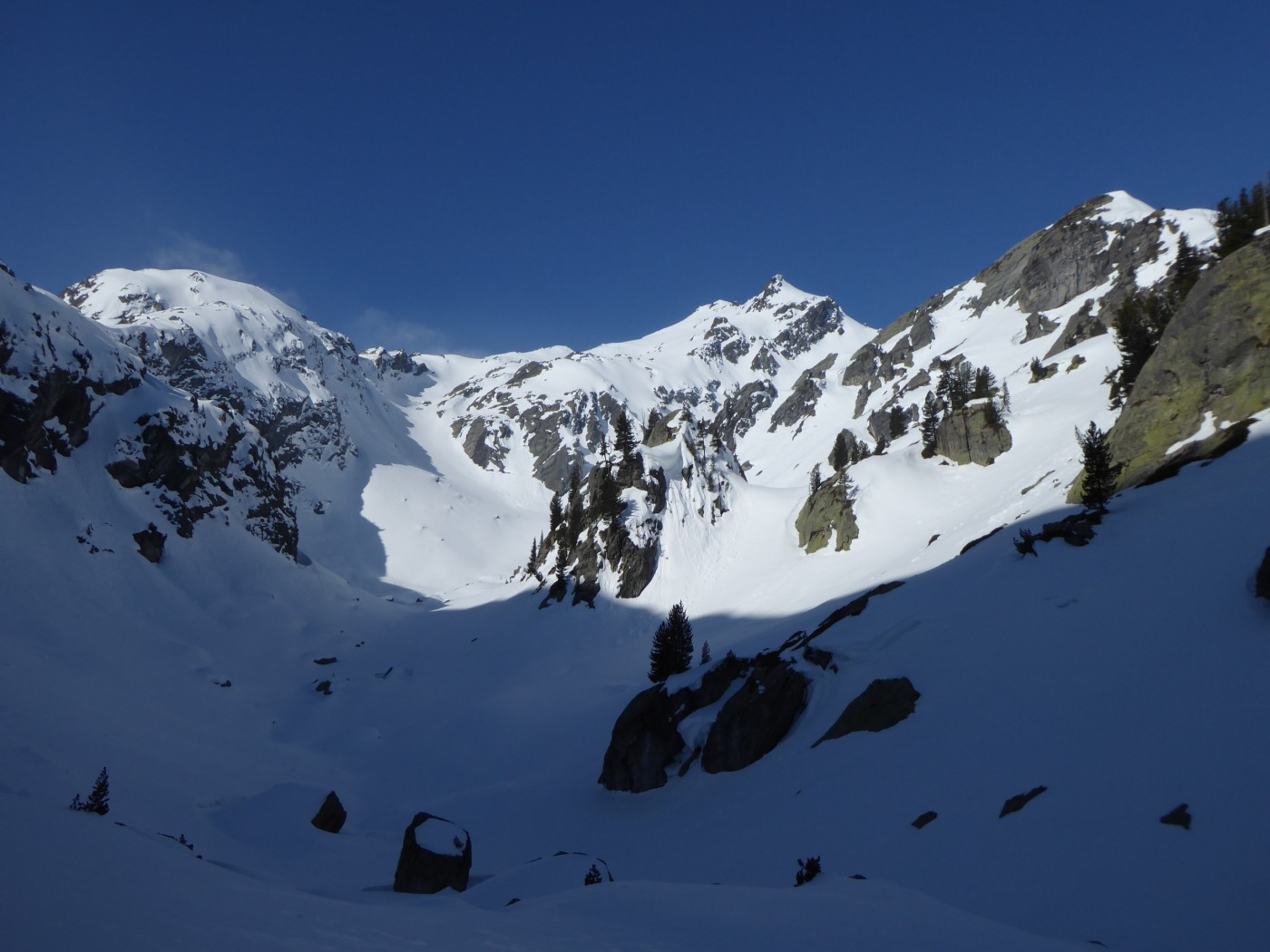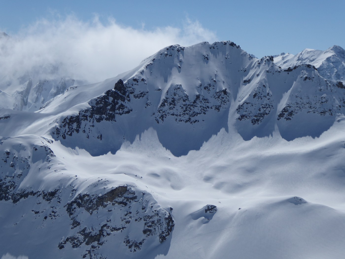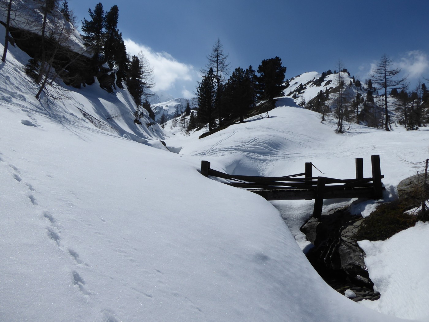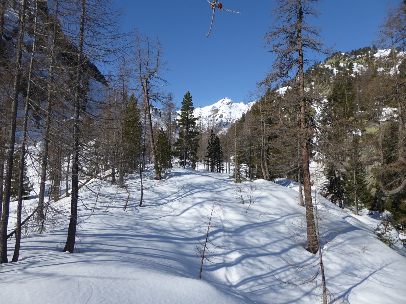Je n'ai chaussé les skis qu'à l'entrée de la combe Sozin (1840m). J'ai opté pour un retour par le vallon des Ponteilles pour profiter des pistes de La Thuile et skier jusque dans la vallée. La station est ouverte jusqu'au 22 avril.