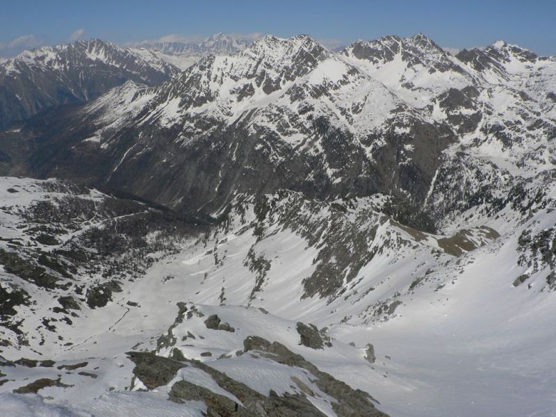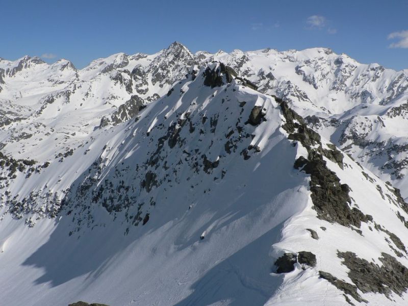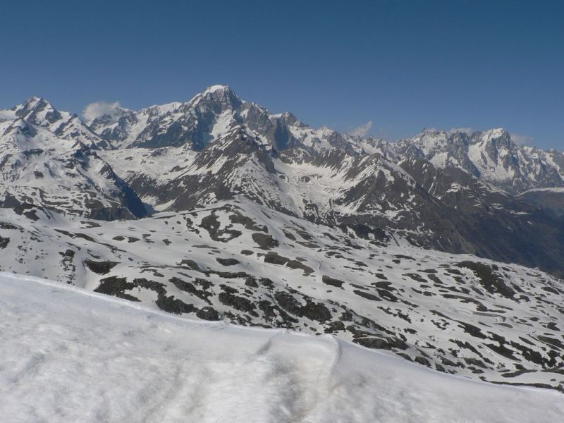 La Thuile, la Joux, Maisonnettes, sentier vers la belle Combe, combe Sozin jusqu'à l'arête entre la Thuilette et le mont Fréduaz oriental. Descente par le glacier oriental de Fréduaz puis par les pistes de la station de la Thuile.