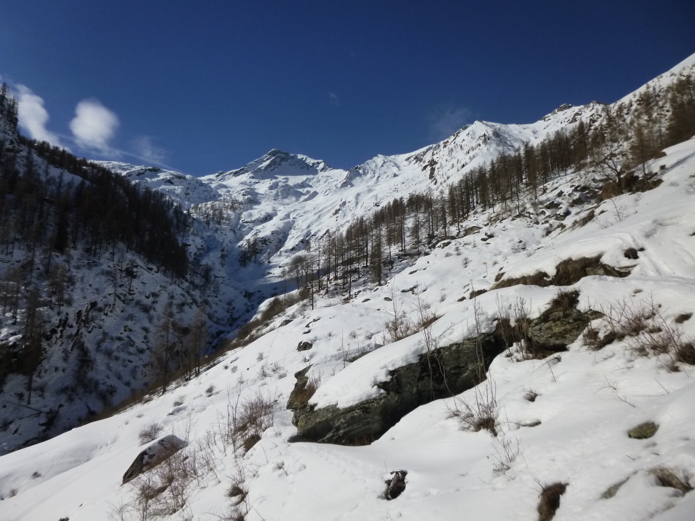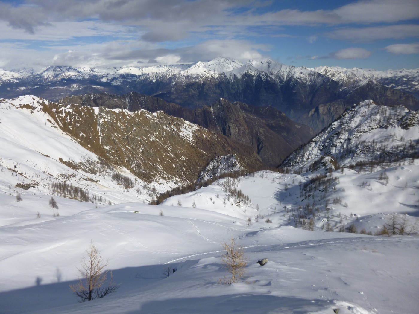 J'avais prévu de partir de Donnes au-dessus de Donnas pour aller au mont Debat mais la route est barrée à Monteil (350m) jusque début avril. La Fricolla par ce côté-là est aussi une belle rando mais la neige n'est plus celle du début de la semaine.