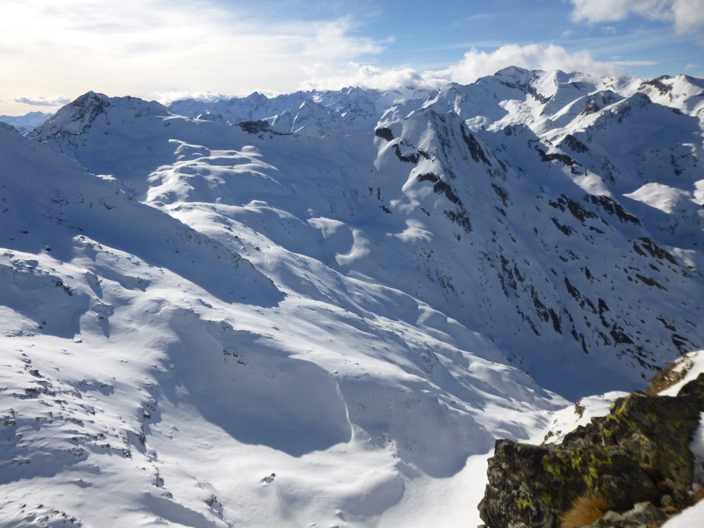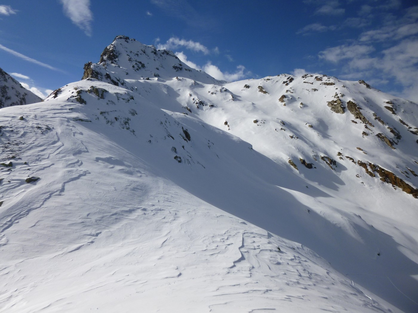 La douceur a bien humidifié la neige. Neige très collante en-dessous de 2400m. Des plaques de fond sont parties dans les pentes E et SE entre le mont Giavin et la pointe de Chenessy.