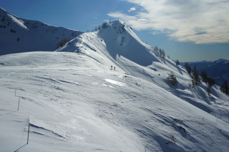 Une bien belle boucle avec des paysages superbes. Au col de la Gardette, le vent souffle en blizzard, et on le gardera de face jusqu'au sommet de la Gardette. On n'en fera donc pas plus. La descente sera intégralement à l'ombre de haut en bas, avec une neige encore bien poudreuse dans l'ensemble. Merci à Juan & Angélique(locaux de Réallon) pour leurs conseils et cafés !