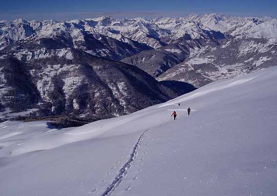 Du très grand ski dans un décor fabuleux. Magique Queyras et ses balades faciles qui, lorsque l'on choisit les bonnes conditions, restent de grands moments de ski. Nous étions les premiers à attaquer la descente de la Gardiole-de-l'Alp mais celle-ci fut bien tracée dans la journée. En revanche, personne sur Mourre-Froid.