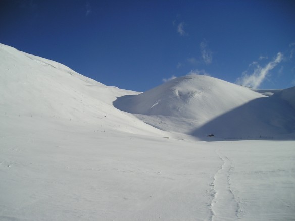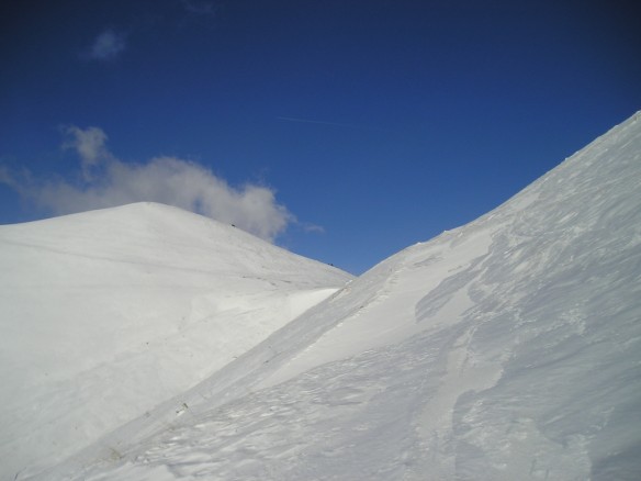 Comme on s'en doutait le vent a tout décapé mais il reste une bonne sous couche qui ne demande qu'à recevoir les prochaines chutes. On n'accroche pas du tout les skis. Bonne surprise versant N du col d'hurtières: 20cm de faces planes sur fond dur: merveilleux à skier mais trop court! Sinon en versant E du colombier au dessus de 1700m une fine croute glacée recouvrait de la bonne poudre assez vieille (faces planes): il semble qu'il n'ait pas neigé hier dans ce coin ou très peu.