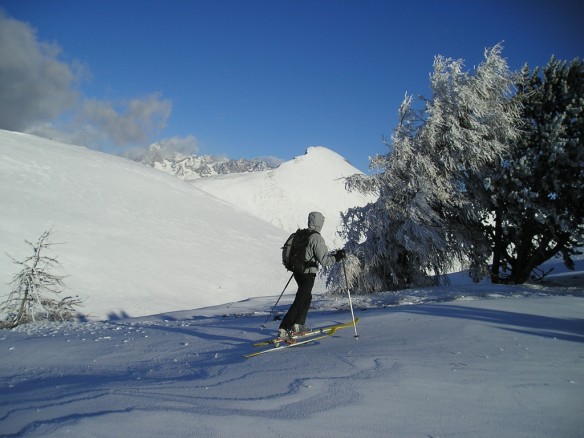 Finalement on a sauvé la journée: initialement prévu d'aller en Chartreuse mais le bulletin mto France annoncait de la neige humide jusqu'à 1750 et en petite quantités. Du coup on se rabat sur ce secteur où j'avais envie de venir depuis un bout de temps. Ballade sympa avec des paysages variés et une vue qui change (obiou, valbonnais...) dans des conditions tempétueuses et avec une qualité de ski moyenne (sauf en versant N abrité du vent): mais bon on a vu le soleil toute la journée et solitude assurée.