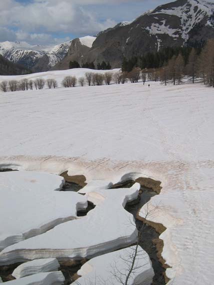 fort regel, degel seulement de sud-est à sud-ouest et encore là où c'est sablé. en nord, croute de surface de 5 cm sur 30 cm de neige sans cohésion