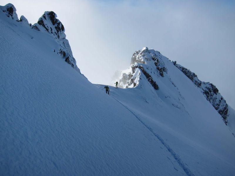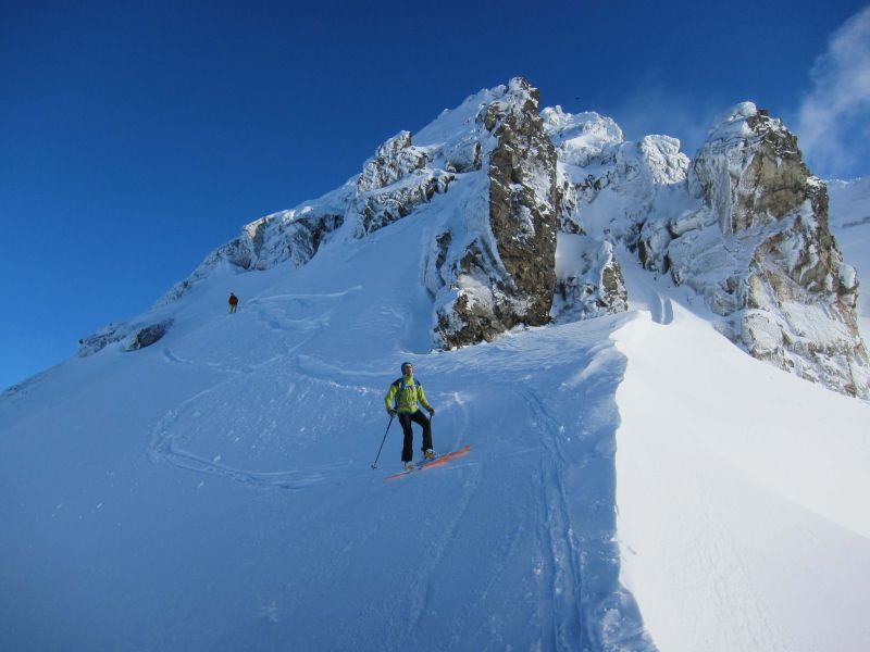 La chute de neige d'hier 10 à 15 cm, a été malmenée par le vent. La distribution c'est faite de manière irrégulière, petites accumulations à coté de zones décapées. La couche superficielle repose principalement sur un fond très dur souvent sensible à ski.