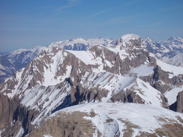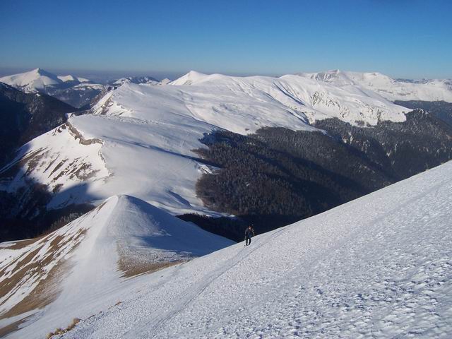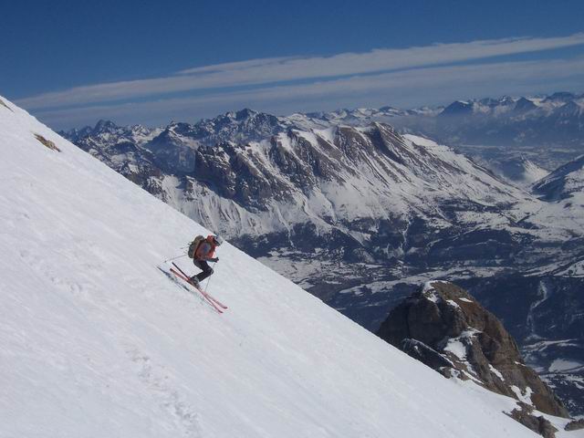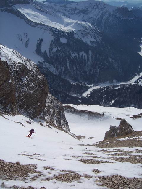 Le 2ème éssai fût le bon, après le but du we précédent où, complètement frigorifiés par le vent et le givre, nous avions décidé de redescendre alors que nous étions paumés du coté du col de la Croix ! Ce jour, les conditions ne furent finalement pas si mauvaises; certes on a pas skié sur du velours, mais le degel fut suffisant pour faire du bon ski sous le Gd Ferrand et dans le couloir du Lauzon