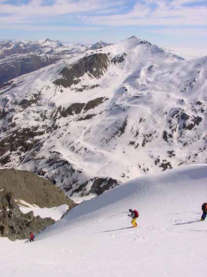 Magnifique circuit au cours duquel nous n'avons pas rencontré un seul randonneur. La draye de descente (600 m dont 400 à 40° avec un court passage à 45°) n'est pas obligatoire, on peut se contenter de la normale nord du grand Queyras, plus facile et plus courte. Dans ce cas la difficulté sera celle du pain de sucre (4.1).