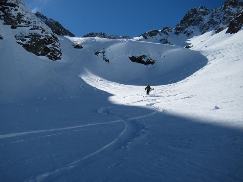 Prabert (1100m) - Gd Replomb montée couloir est- descente par un autre couloir est jusqu'au lac. Remontée au Barlet par couloir est, descente versant NO.