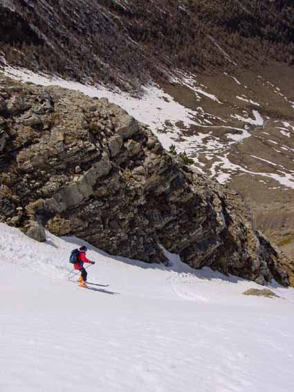 Partis pour déposer une bagnole dans le grand vallon et utiliser les remontées des Orres (dernier jour) nous avons renoncé à la manip compte tenu du déneigement important des faces est ; nous nous sommes donc rabattus pour cette bouclette dans ce grand vallon si dépaysant. Un des plus beaux panorama des Alpes, de l'Argentera au Mont-Blanc
