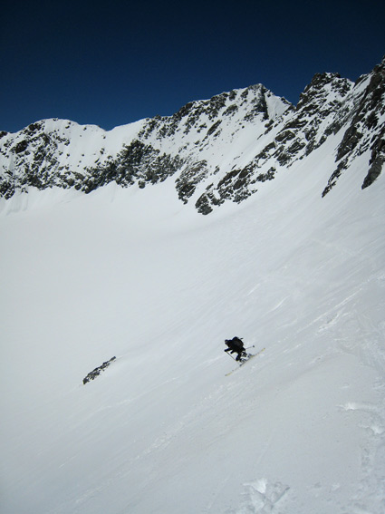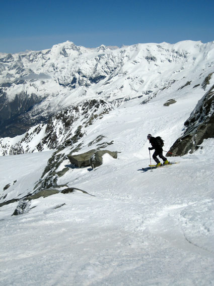 la poudre est enfouie sous des vagues importantes (jusqu'à 50 cm sur le glacier de chavière) et une croute glacée en surface, peut être due à un phénomène de brouillard givrant en fin de chute de neige. Purges observées en face sud raides et qqs départs en forme de plaque (d'épaisseur maxi 30 cm).