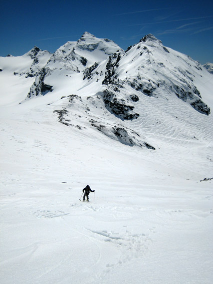 peu de visiteurs (une dizaine de voitures) personne dans les Pères, 1 skieur à la sud-ouest de polset en AR (F13), qqs uns dans la combe ouest de Peclet (F12) la majorité sur F14