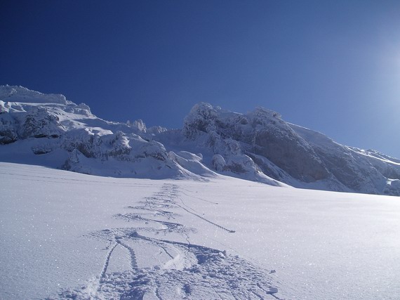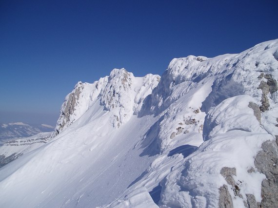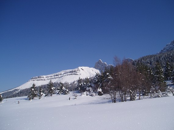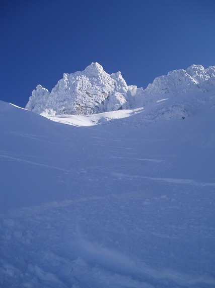 Très belle rando pour lèves tard, superbe ambiance sous et sur les arêtes encore complètement plâtrées. Couloir en très bonne conditions et vierge de trace. Le coin est très fréquenté par les raquetteurs mais pas par les randonneurs, seulement 2 traces sur toutes les pentes du Gerbier (une sur un pente à gauche du couloir apparemment plus raide mais semblant ne pas déboucher), ça laisse de la place. Le couloir devrait encore resté poudreux, il est protégé du soleil par un cote rocheuse rive gauche.