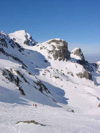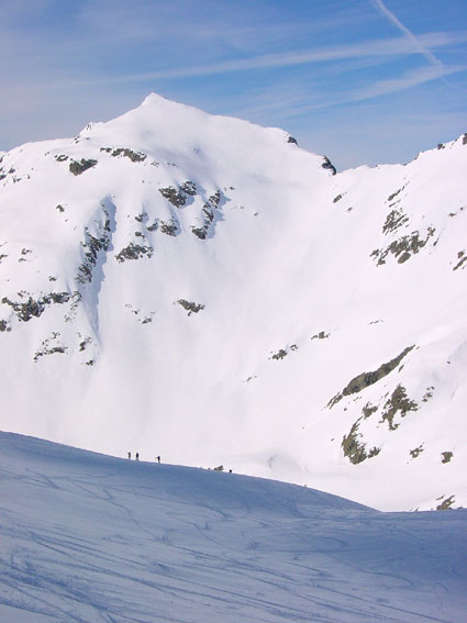 c'est une variante du tour du gd domenon (A22) en descendant beaucoup plus bas dans la combe de baton, avant qu'elle ne rejoigne la grande vaudaine. En evitant le colon au retour, le denivelé est comparable. Bonne surprise pour la neige, excellente en cherchant bien : soit de la poudre tassée (maxi 20 cm) soit de la transformée. Parking à Freydières. Excellent travail malgré les gros paquets de neige avec l'aménagement de 150 places faciles d'accès. On ne fera (toujours !) pas les memes eloges pour la gestion du refuge de la pra. La batisse principale est fermée et dans le minable gourbi on trouve douze matelas et quelques couvertures mais pas de poele. Scandaleux, si on songe que le site recele une trentaine de courses, toutes assez longues et que nous sommes à 20 mn de la prétendue "capitale des alpes".