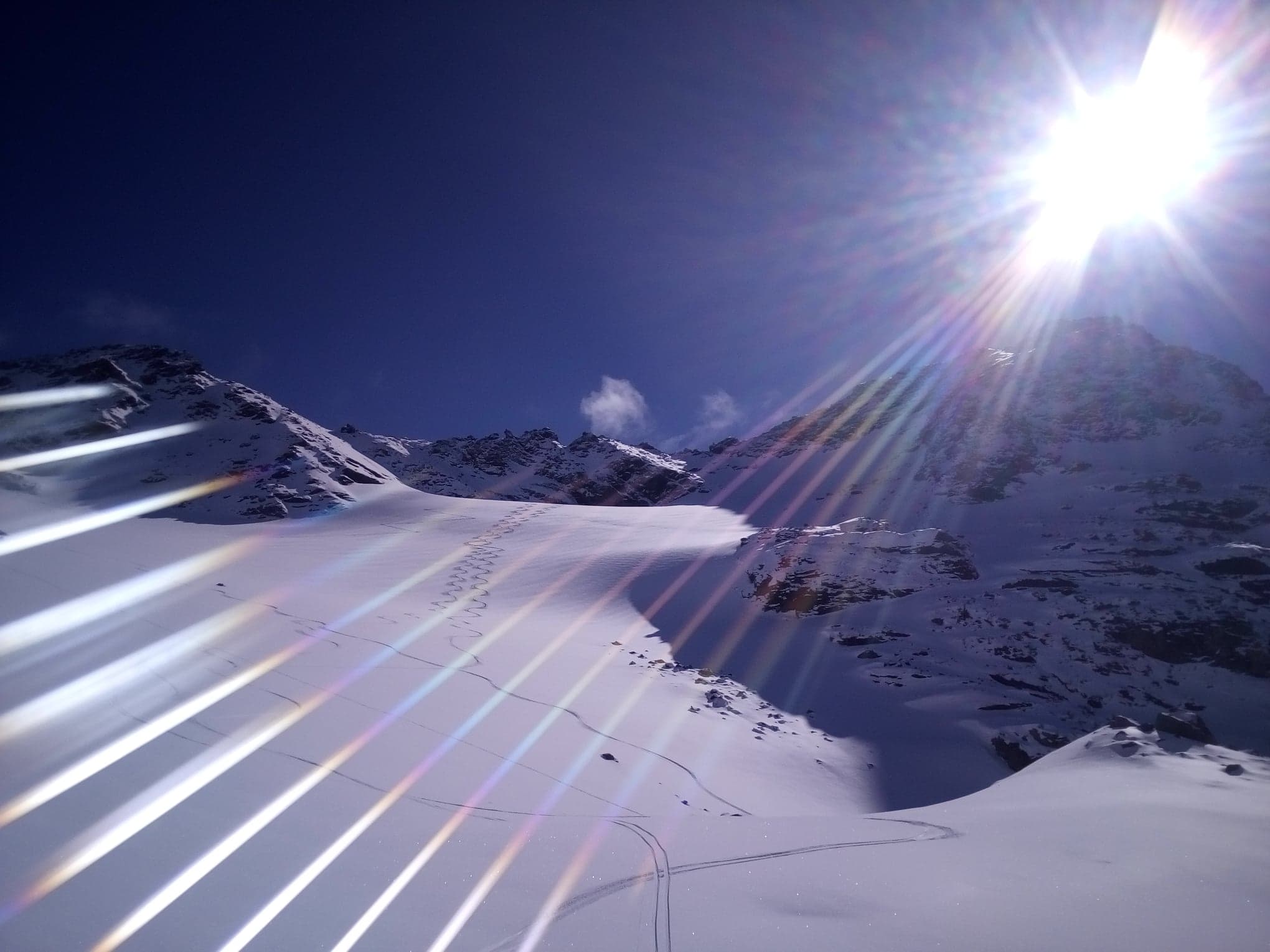 Nous pouvons tracer ce glacier à la montée comme à la descente, de ces descentes d'une qualité qui n'a rien à envier à la pleine saison d'hiver.