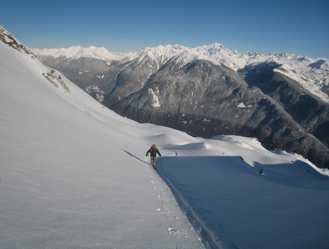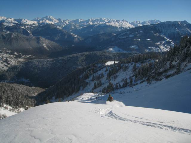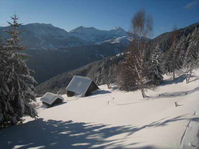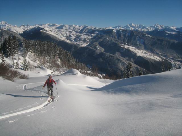 Une belle sortie carte postale. Pas grand monde dans le secteur aujourd'hui, hommis 2 raquetteurs sur la partie basse, nous n'avons vu personne. On avait imaginé poursuivre un peu plus loin en fonction des conditions rencontrées, mais le chalage et les énormes quantités mobilisables nous ont bien calmé. Allez encore une bonne chute à basse altitude et ce serait parfait !
