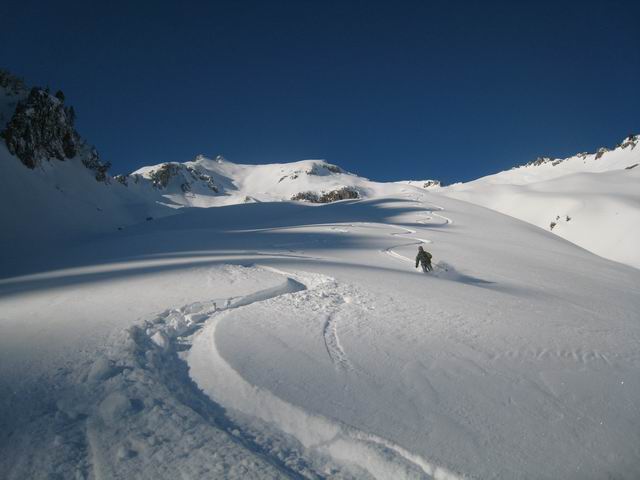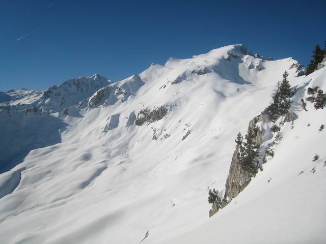L'paisseur de neige est vraiment impressionante dans le secteur. La couche supérieure est ultra-légère, la choésion commence vers 1800. Neige roulée en surface entre 1400 et 1800. Nombreuses ruptures jusqu'au sol observées au pied des Arangles, de sud à nord-est.
