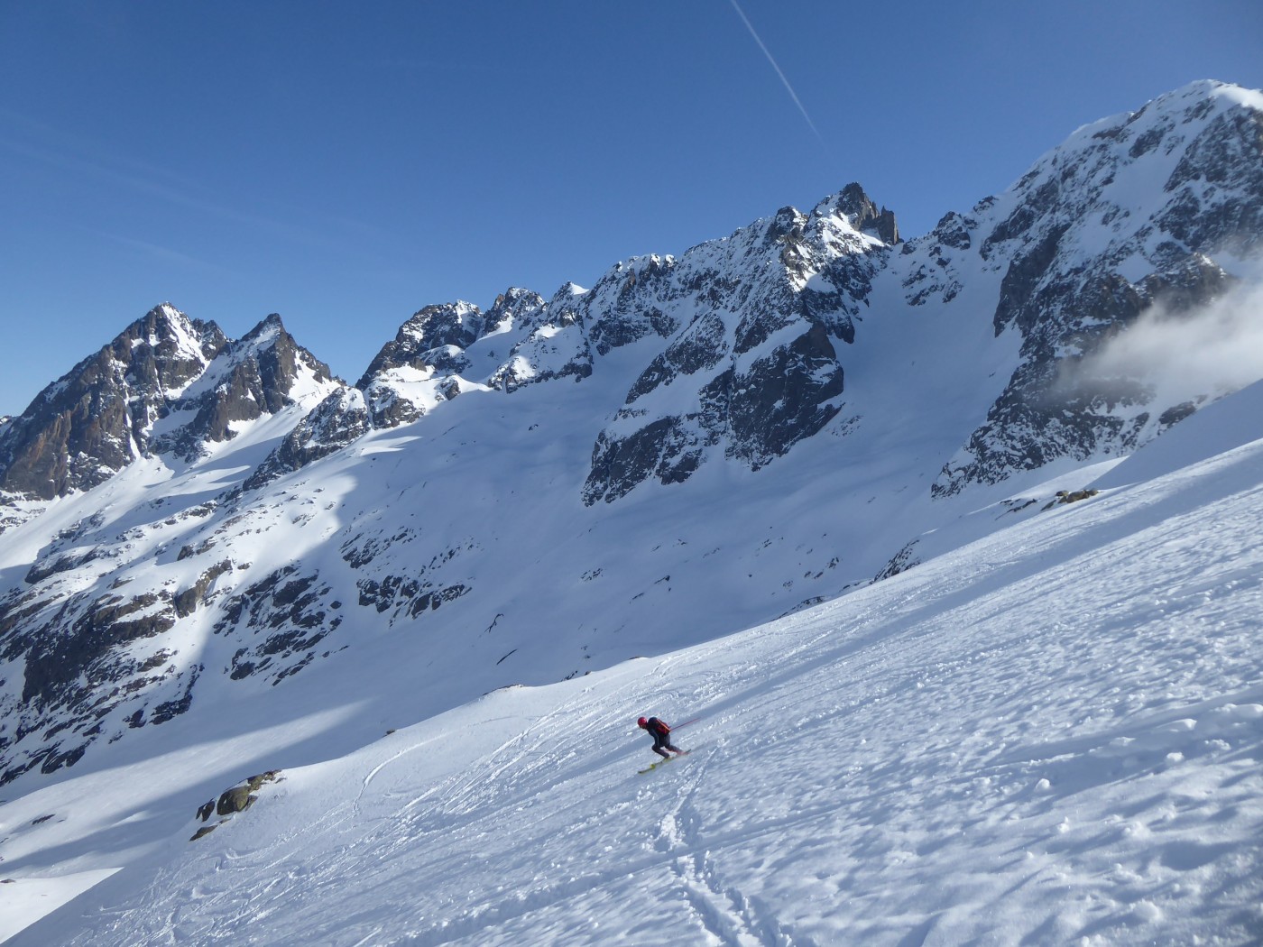 Au-dessus de 1900, neiges transformées dans les orientations est à ouest en passant par le sud (couloir du gendarme Wehrlin, rive droite de la combe du Pouce, combe d'Envers de Bérard, pentes au-dessus du refuge de la Pierre à Bérard. Dans les orientations nord, un peu de poudreuse ventée ou croute. En dessous de 1900, la neige est dure, gelée.