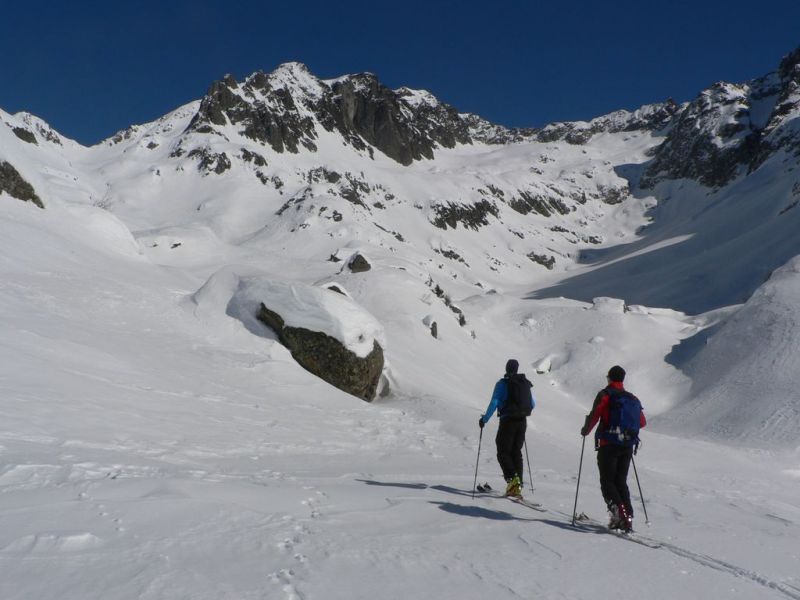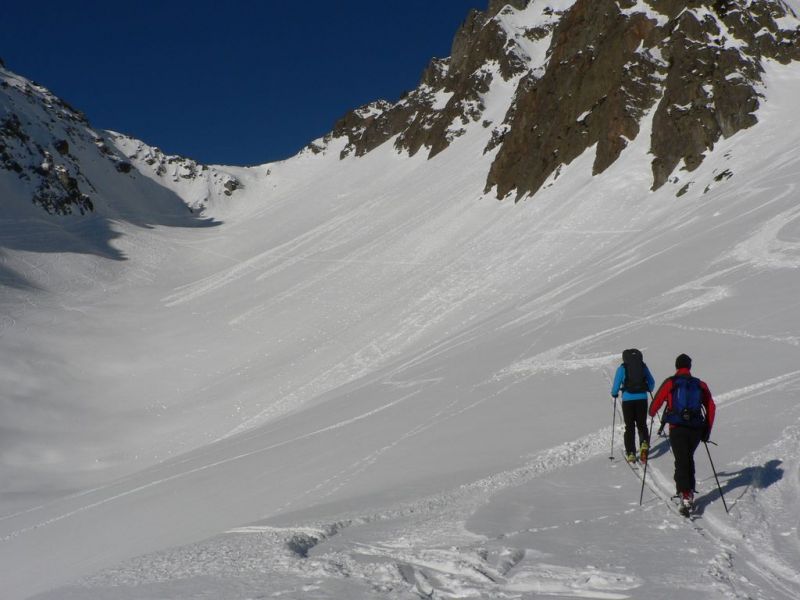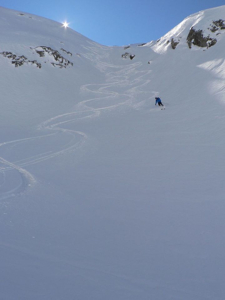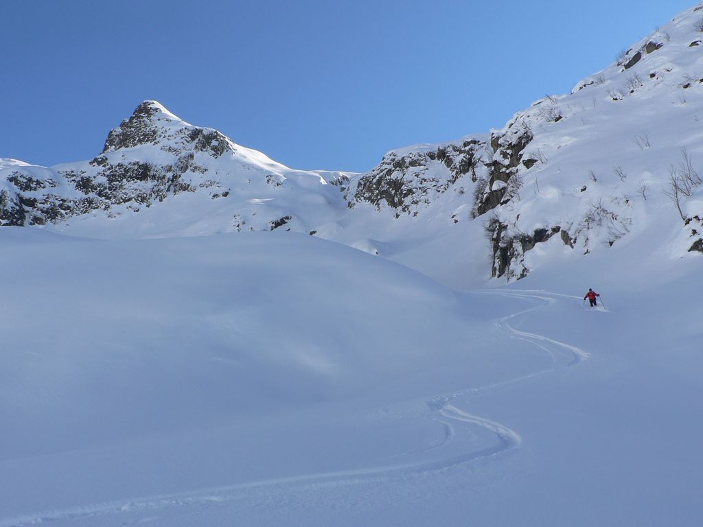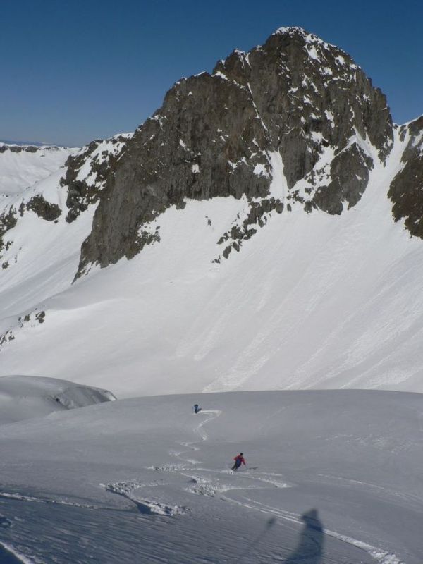 Très belle sortie tant au niveau du temps que de la qualité de la neige. Nous étions seuls dans la combe de la Floria (peu tracée) pour profiter d'une très bonne poudreuse. Le ravin du bas est très bien rempli. Pas mal de traces s'y concentrent mais la neige est encore souple. Le vallon de Bérard est bien tracé mais la neige est restée froide et plutôt agréable à skier. Le bas du vallon est pisté et la neige commence à être dure mais reste aussi agréable à skier. De toute la journée, nous n'avons rencontré que 5 personnes (au col de Bérard) qui parcouraient Crochues-Bérard (A10) en décalage horaire.