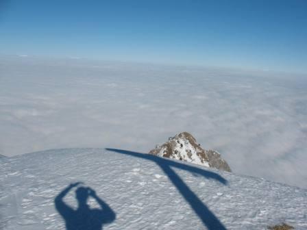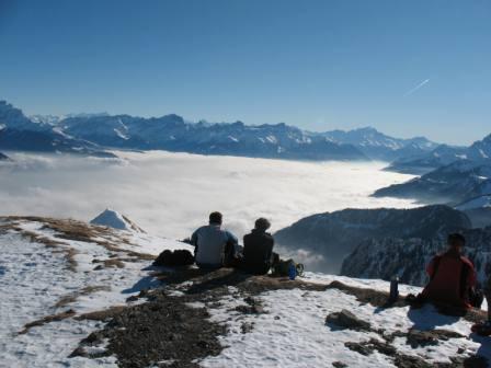 Salut le Volo Team de Grenoble et la périphérie. Comme j'en avais parlé l'an dernier avec Volodia et Lionel, allez, cette fois ci, je me suis décidé à rentrer une course dans Volopress, après presque 3 mois d'écumage et de découverte de notre nouveau pays d'adoption (Préalpes Fribourgeoises, Dent Blanche depuis Champé, Pte Bourdillon depuis Champé, etc ;;; et je me disais que le Grammont serait une bonne occasion de voir le Lac à partir du sud et pas comme d'hab de la maison, au Nord de la Grande Virgule. Raté, le satané stratus qui nous force chaque WE depuis presque 3 mois à prendre de l'altitude pour voir le soleil était encore plus dense et plus haut (1200 m). Ca aurait été cuit pour une séance de skate aux Rasses au soleil, on voyait juste les hauts du Jura ce matin !!!!