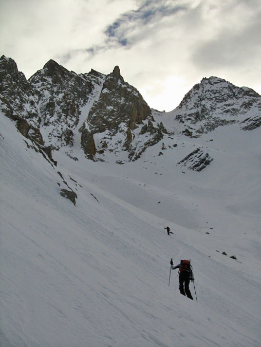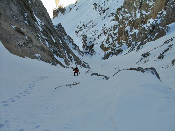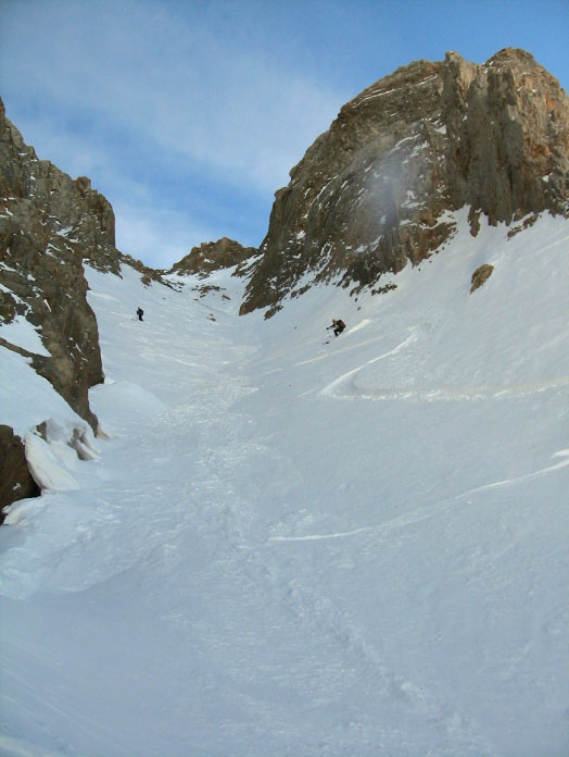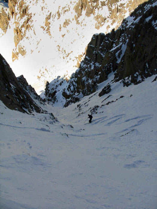 Bonne neige dans le couloir, un peu d'attention dans le haut avec les pierres pas trop loin.