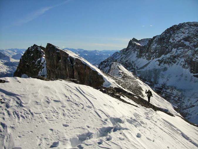 Une bonne sortie avec du ski de haut en bas dans un secteur bien enneigé (et pas trop fréquenté) mais qui a pris le vent depuis dimanche dernier (but au même endroit où les quantités de neige nous avaient fait renoncer après 150 m de brassage).