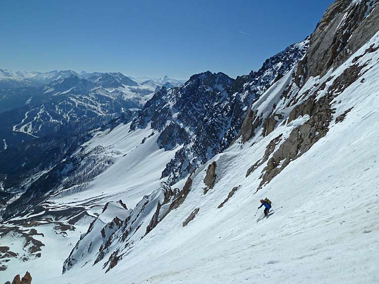 Le couloir est rempli mais ça devient juste sur le haut avec 2-3 étroitures (dont 1 retorse sous le départ).