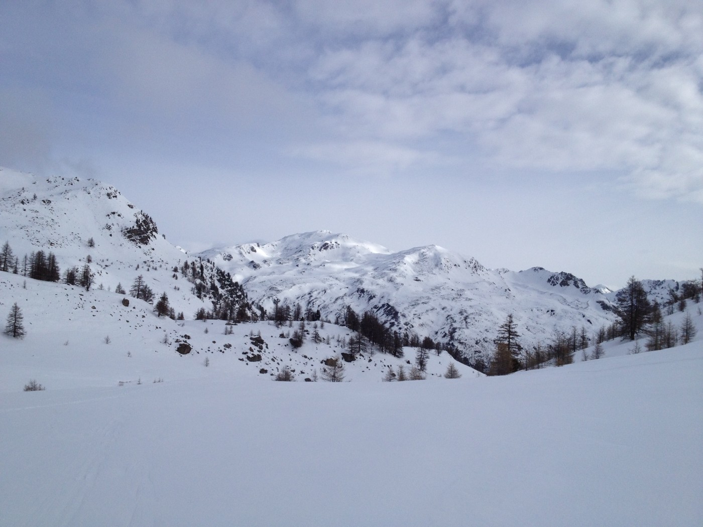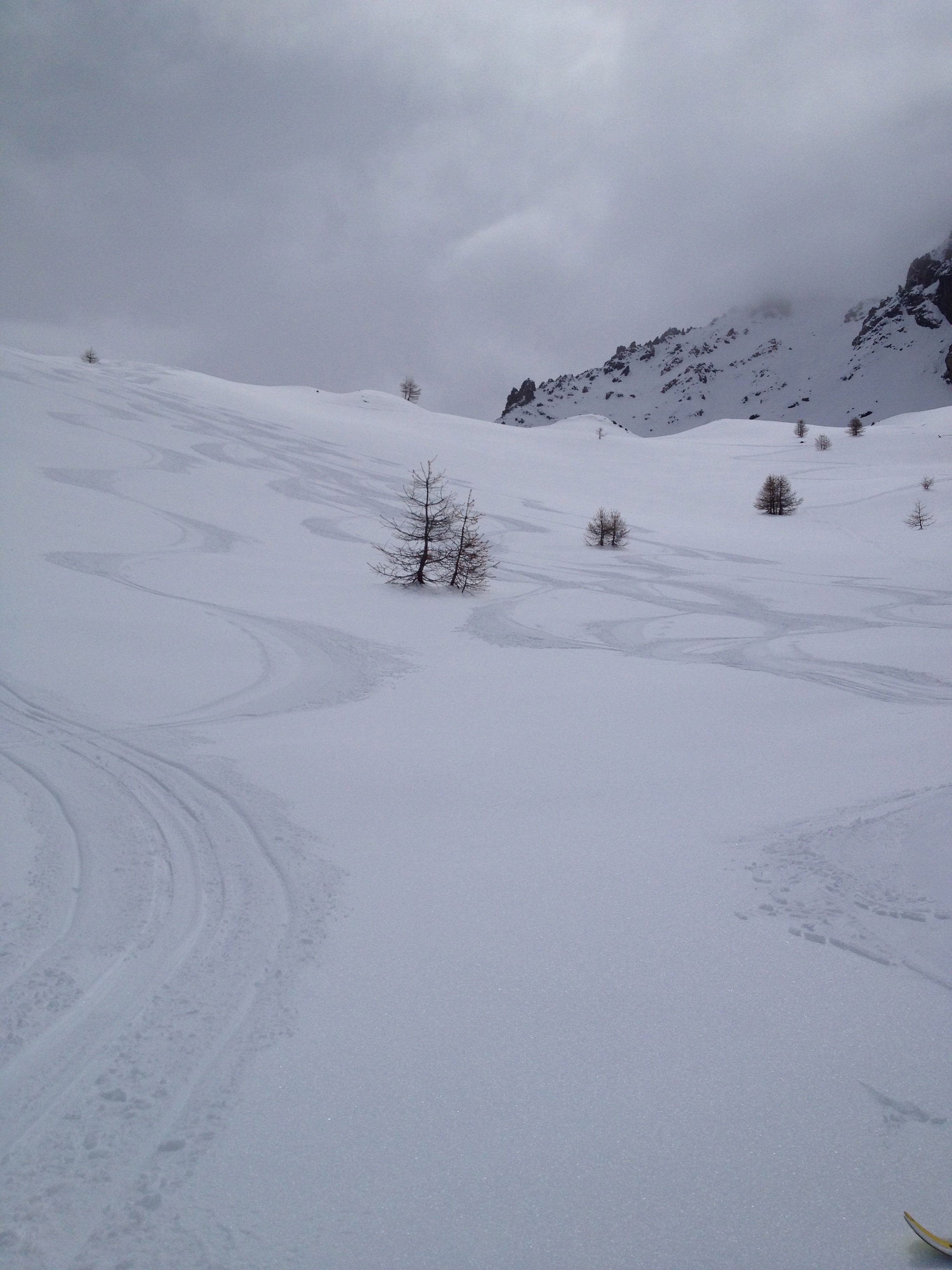 Neige depuis le pont du Rately. Transfo agréable à skier dans le vallon de Buffère. Poudre en cours de tassement dans le versant N du Grand Aréa.