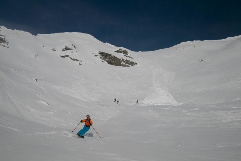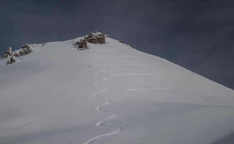 Neiges variées, rarement bonnes sauf en quelques endroits localisés difficiles à trouver. On a trouvé le secteur Bagna-Argentier plus "craignons" que du côté du Thabor : des plaques sont déjà parties et on en a fait partir une petite en face sud du GA (croûte dure portante qui a cassé sur 15 cm et glissé sur le grain fin)