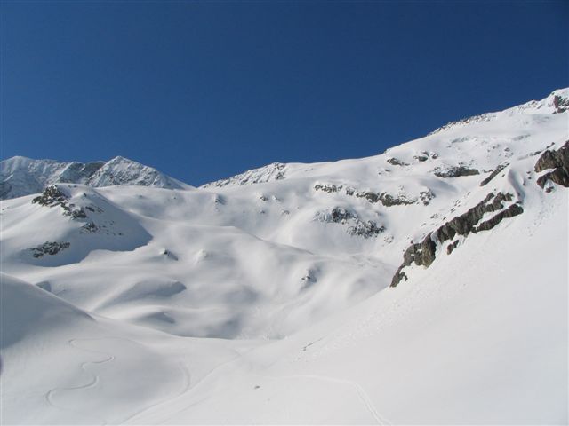 Montée efficace, glacier bien bouché et en bonne poudreuse ( surtout sur la croupe séparant les glaciers de Trocquairou et des Volnets ). Descente excellente en transfo en dessous.