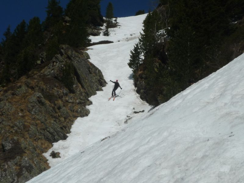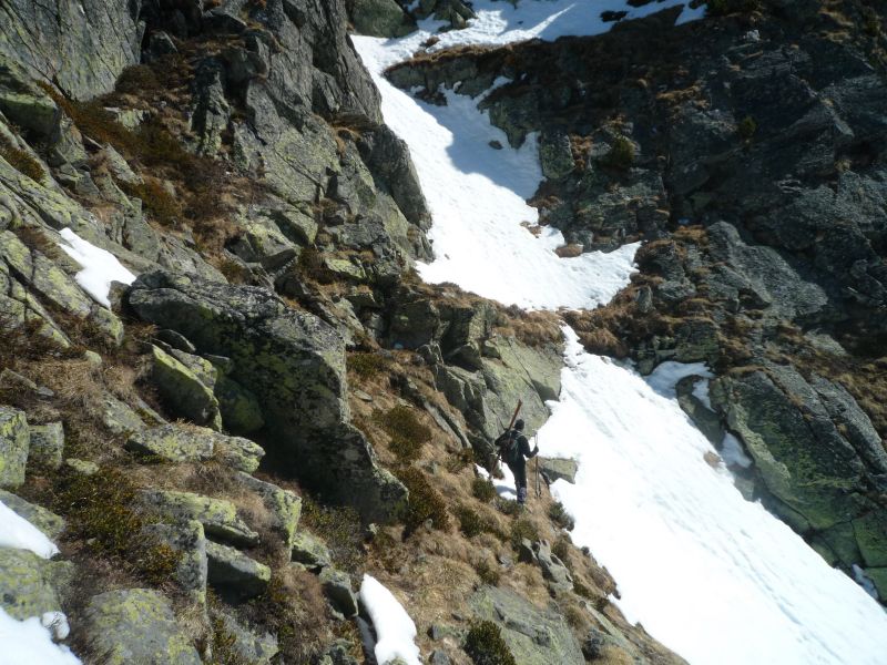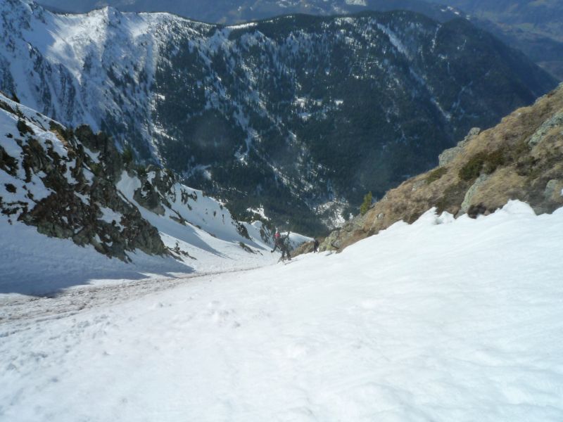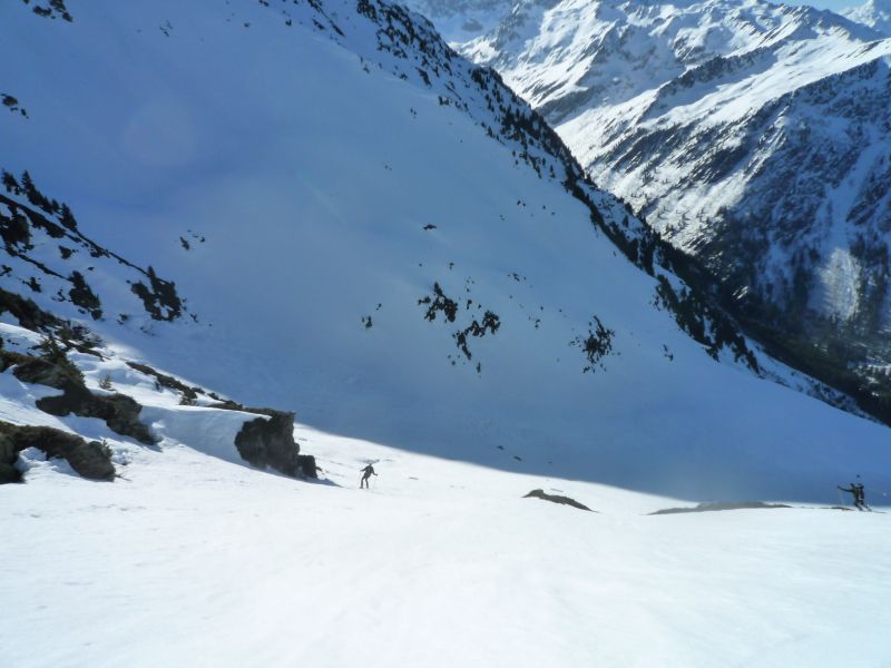 Deux déchaussages obligatoires:le 1er vers 2100 pour la deuxième bifurcation(couloir à gauche).Le 2eme juste dessous vers 2000-1900 pour cause de goulotte glacée(descente en crampons-piolet sur 50 mètres environ.