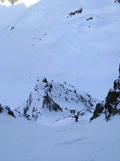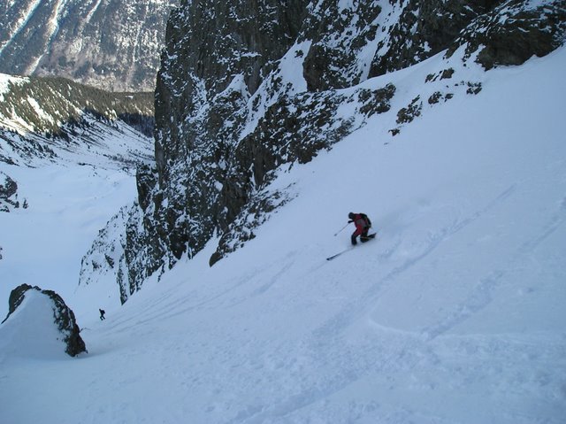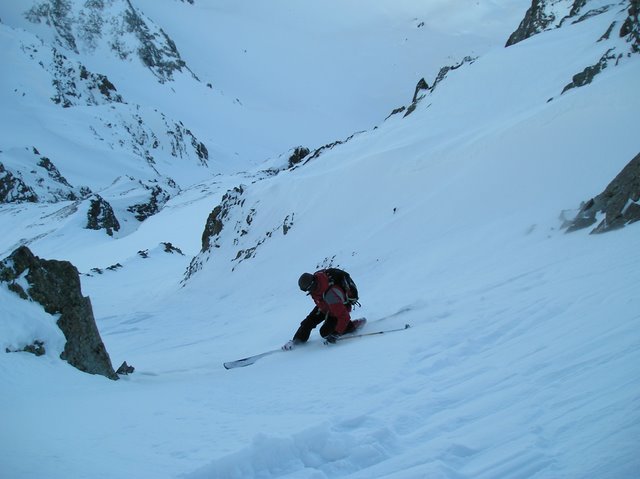 Plus c'est bas, plus c'est bon! Le plateau sommital du Grand Charnier comme une bonne partie du couloir qui sont ouverts au vent offrent une neige de type carton cassant en plaque de 8-10 cm de hauteur. Plus bas, c'est une poudre assez dense puis de plus en plus légère au fur et à mesure que l'on descend. Dans l'ensemble, c'est du bon ski.