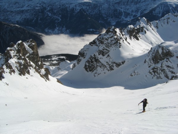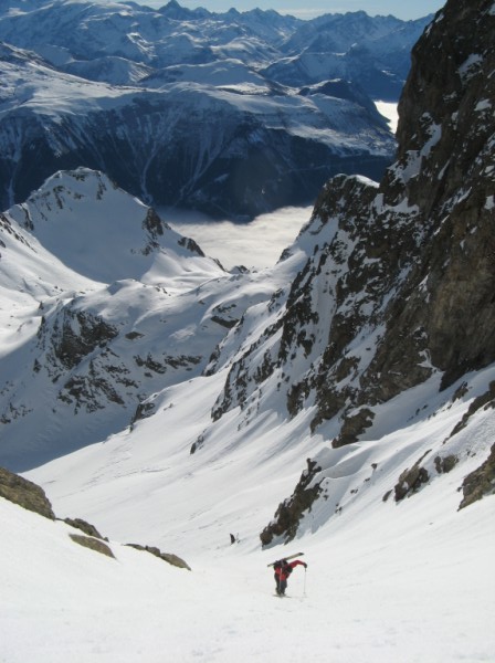 J14.3 puis passage au col 2459 et la Grande Roche. Départ entre celui-ci et le point 2485 par des pentes E (bonne transfo) puis NE (dure avec bon grip) puis SE transfo humide.