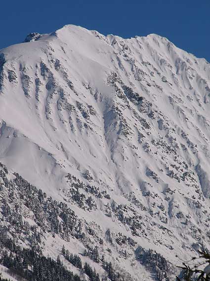 Neige hétérogène dans la face mais bonne à skier. En gros, c'est de la poudre en haut et en bas, entre les deux, notamment pour le passage clef, une neige type grain fin avec parfois un peu de poudre dessus. Le plus important fut pour nous de nous méfier des changements de neige.