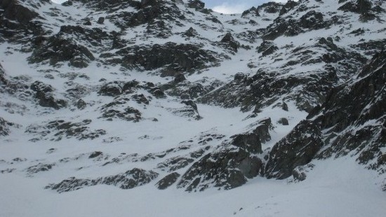 Les fonds des couloirs de la face Ouest sont en béton. Les rives sont en vieille poudre ou en croute